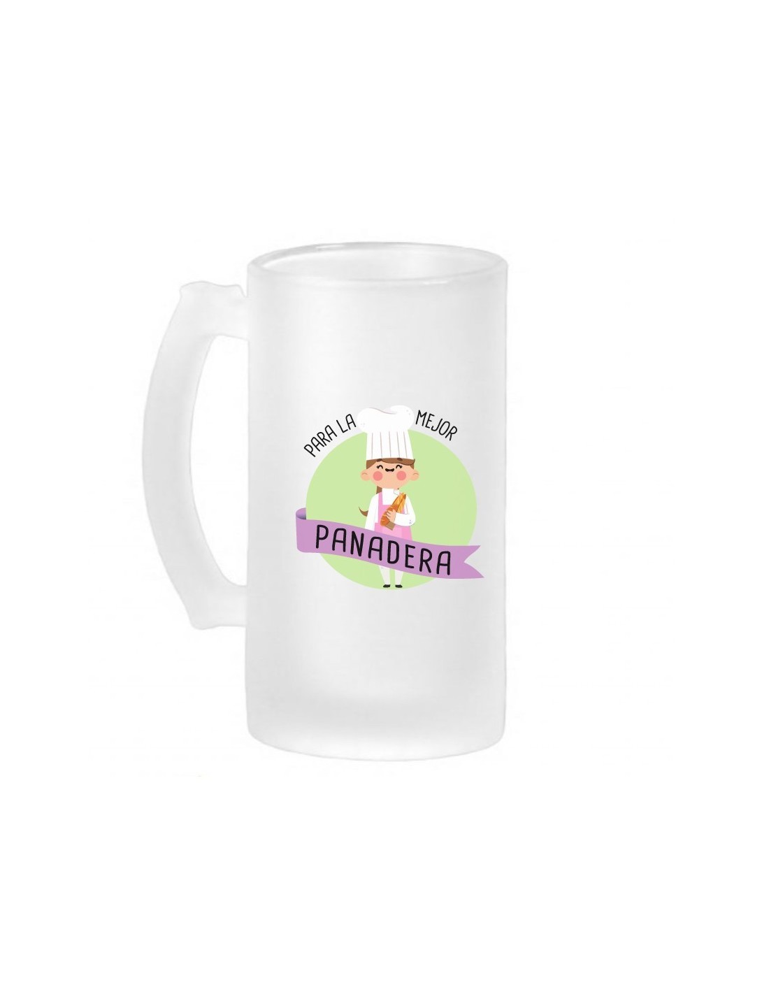 Original jarra de cerveza de vidrio esmerilado decorada con el mensaje "para la mejor panadera".