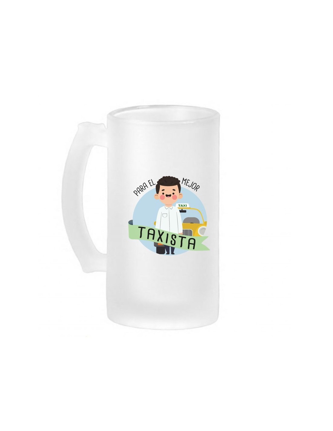 Original jarra de cerveza de vidrio esmerilado decorada con el mensaje "para el mejor taxista".