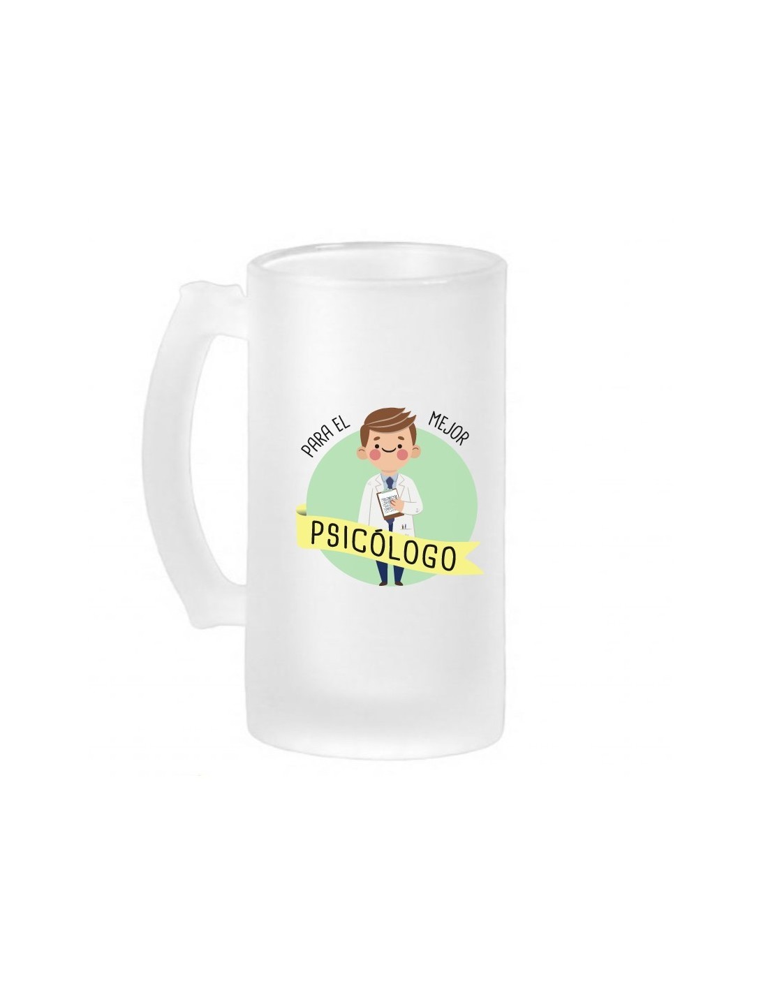 Original jarra de cerveza de vidrio esmerilado decorada con el mensaje "para el mejor psicólogo".