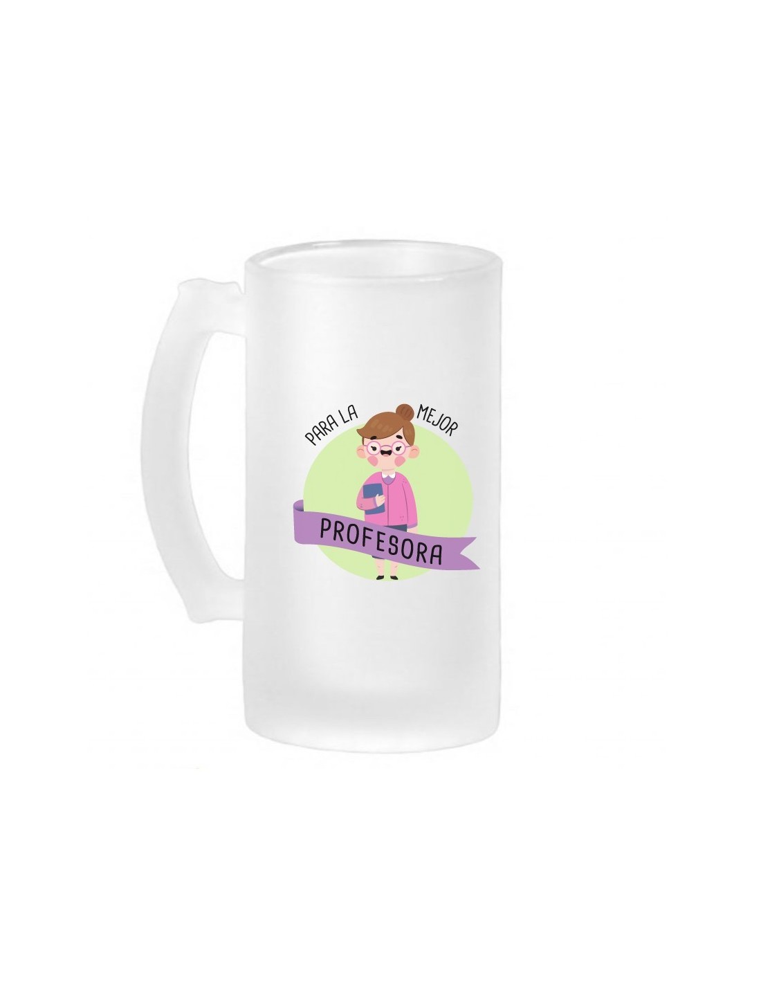 Original jarra de cerveza de vidrio esmerilado decorada con el mensaje "para la mejor profesora".