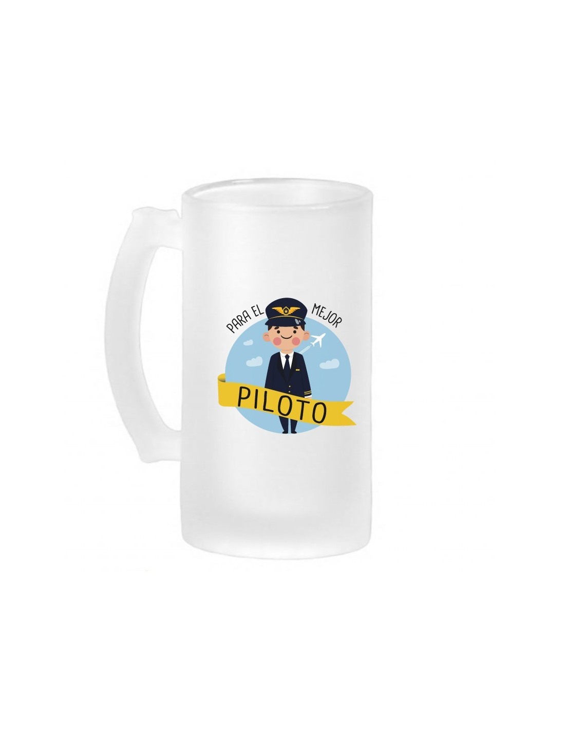 Original jarra de cerveza de vidrio esmerilado decorada con el mensaje "para el mejor piloto".