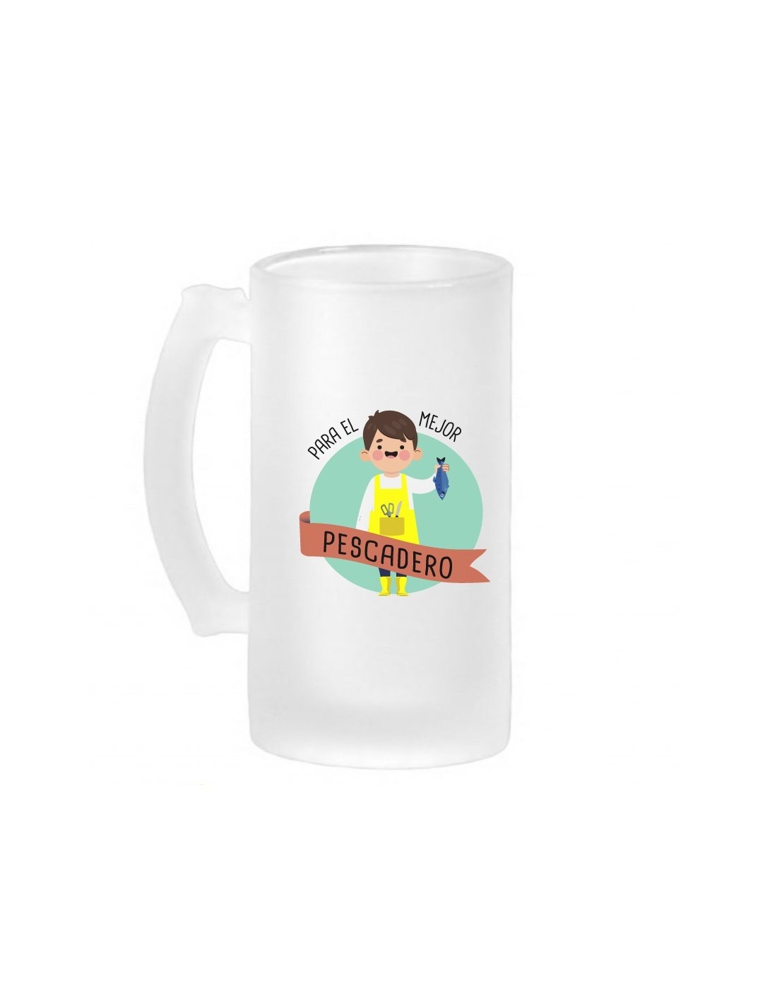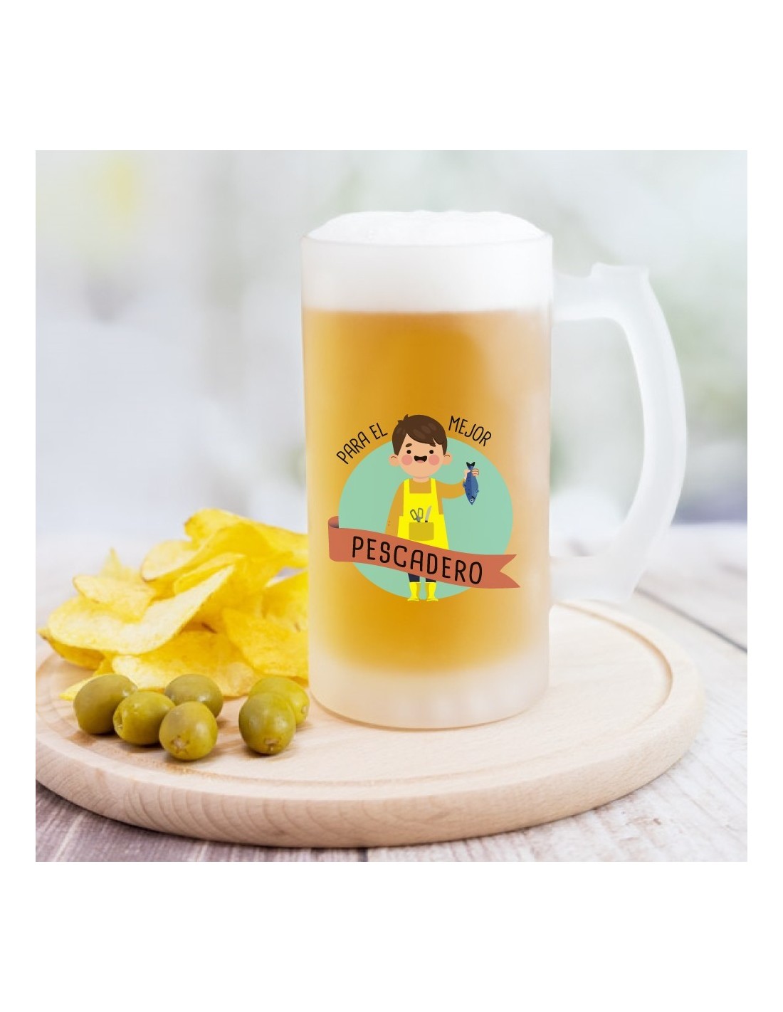 Original jarra de cerveza de vidrio esmerilado con efecto congelado, decorada con el mensaje "para el mejor pescadero".