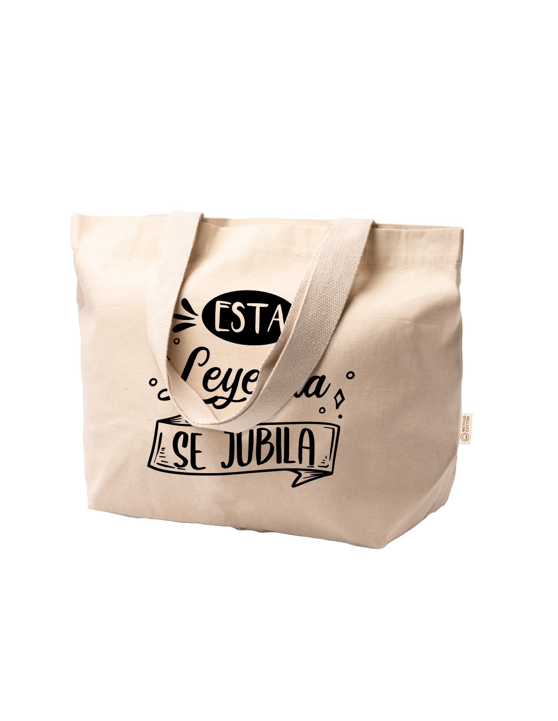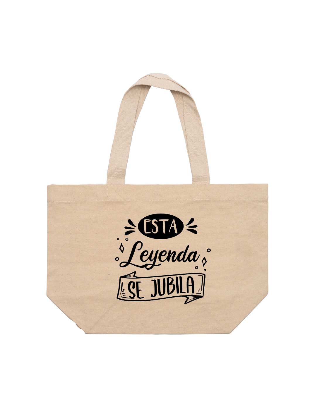 Amplio y ligero capazo de algodón decorado con el mensaje "esta leyenda se jubila".