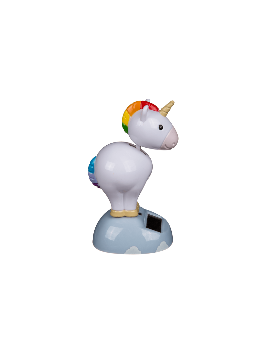 Original encendedor a gas recargable de color blanco decorado con dibujos de unicornios.