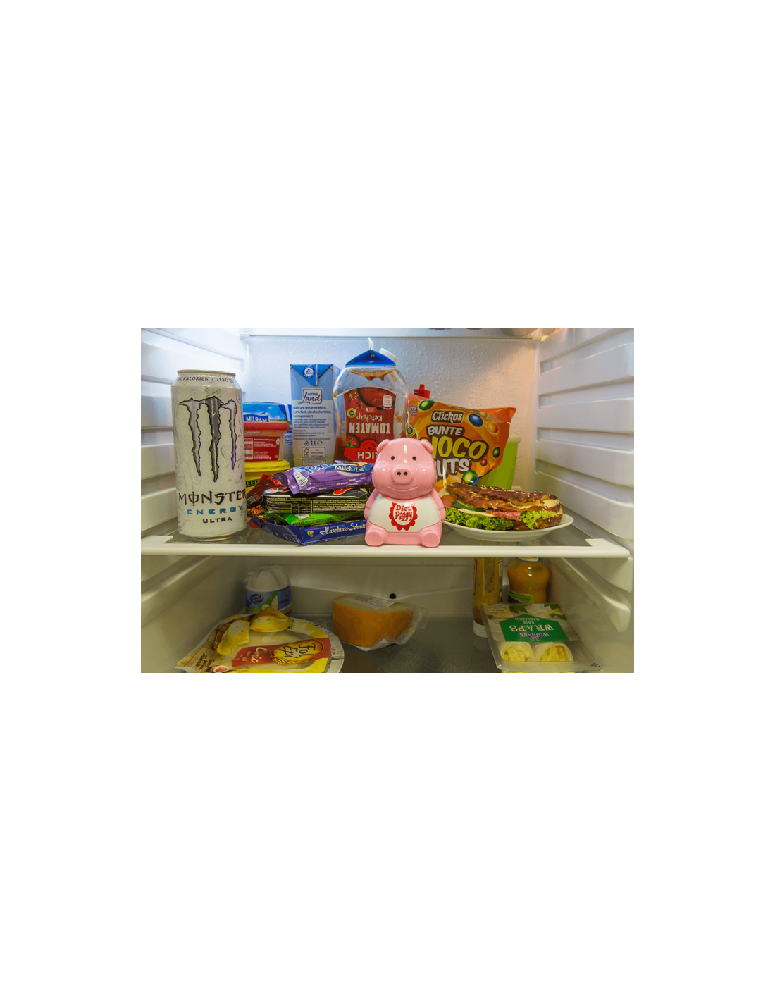 Original cerdito guardián de dieta para la nevera con sensor de luz y sonido. Suena al abrir la nevera.