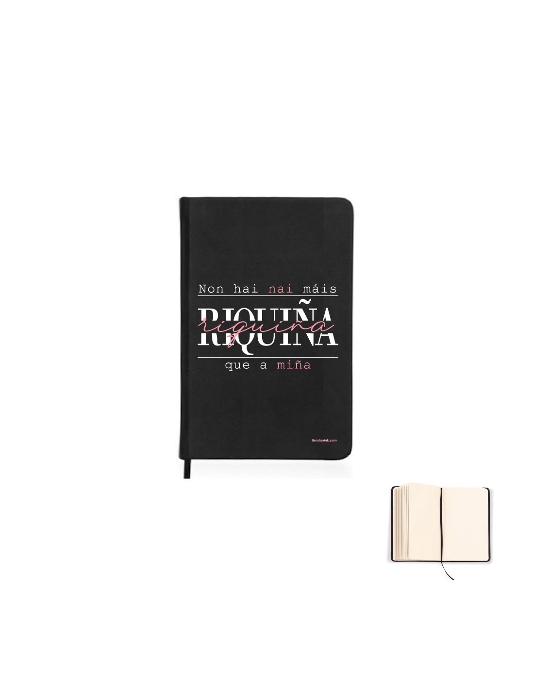 Original libreta color negro decorada con el mensaje "non hai nai máis riquiña que a miña". Perfecta para las anotaciones del día a día. ¡¡No dejes escapar ninguna idea!!