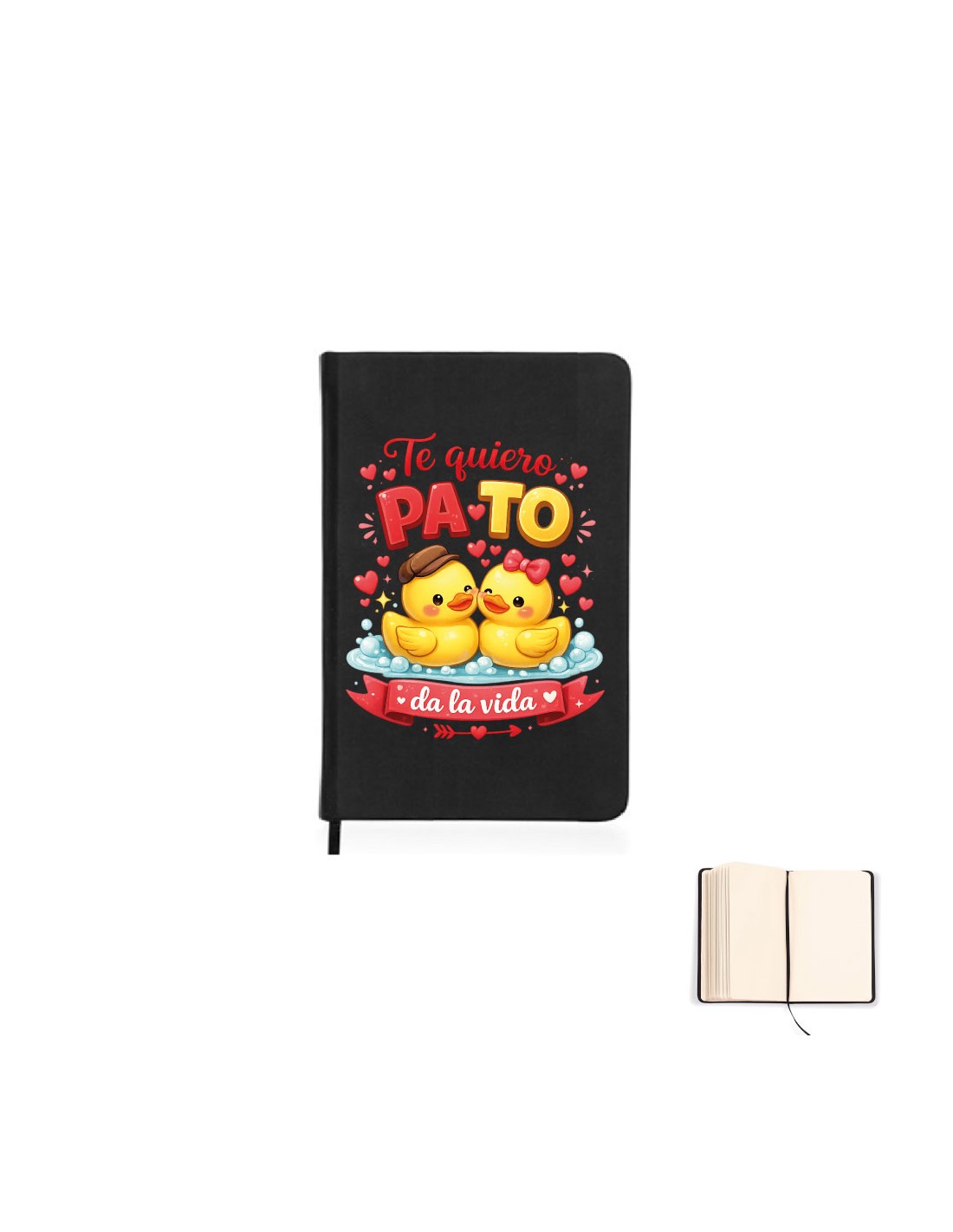 Romántica y práctica libreta negra decorada con mensaje "te quiero pa toda la vida" . Perfecta para las anotaciones del día a día. ¡¡No dejes escapar ninguna idea!!