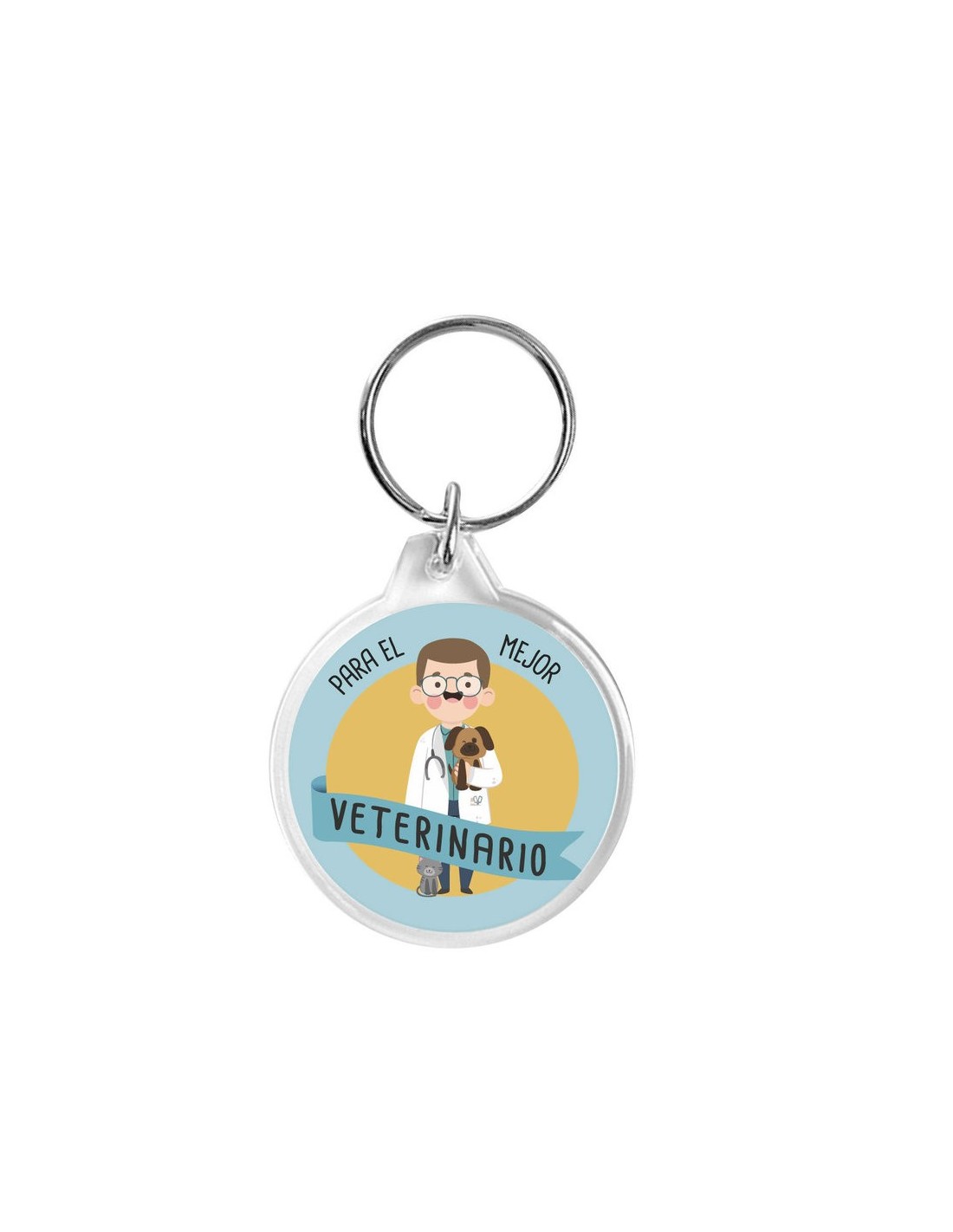 Original llavero acrílico decorado con el mensaje "Para la mejor veterinaria".