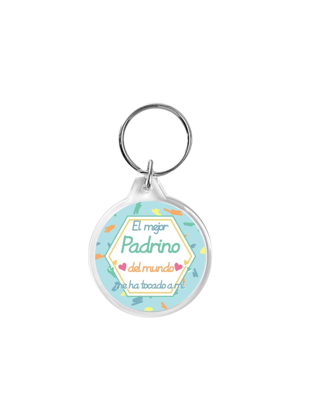 Original llavero acrílico decorado con el mensaje "el mejor padrino del mundo me ha tocado a mi".