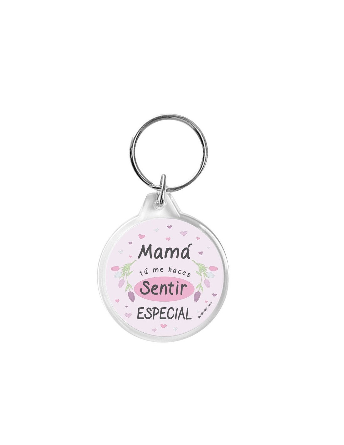 Original llavero acrílico decorado con el mensaje "Mamá tú me haces sentir especial".