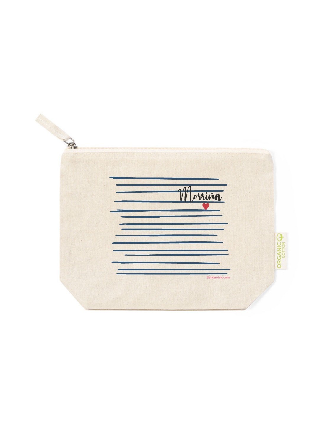 Práctico y ligero neceser de algodón con cierre de cremallera decorado con el mensaje "morriña".