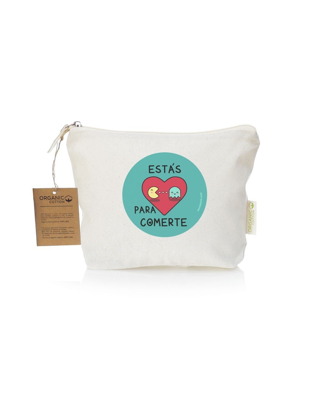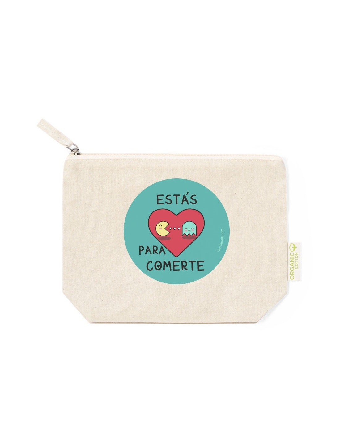 Práctico y ligero neceser de algodón con cierre de cremallera decorado con el mensaje "estás para comerte".