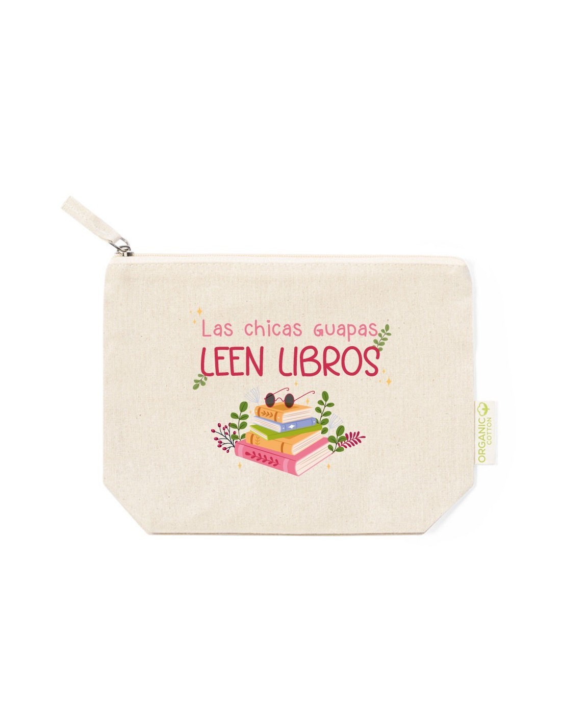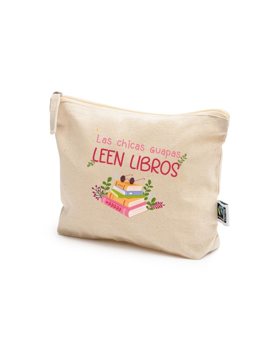 Práctico y ligero neceser de algodón con cierre de cremallera decorado con el mensaje "las chicas guapas leen libros".
