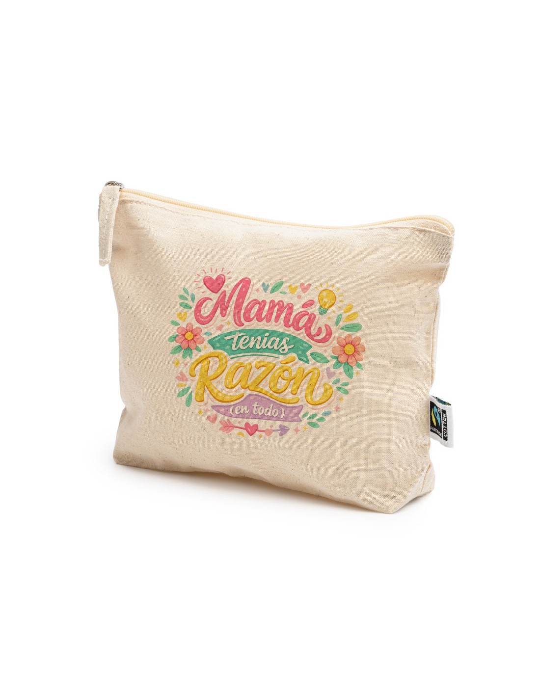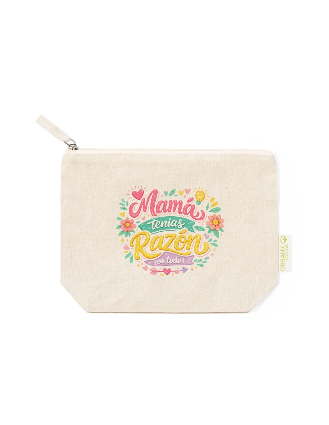 Práctico y ligero neceser de algodón con cierre de cremallera decorado con el mensaje "Mamá tenías razón en todo".