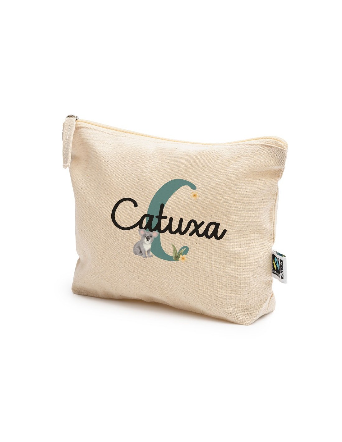 Original neceser de algodón decorado con el nombre "Catuxa".