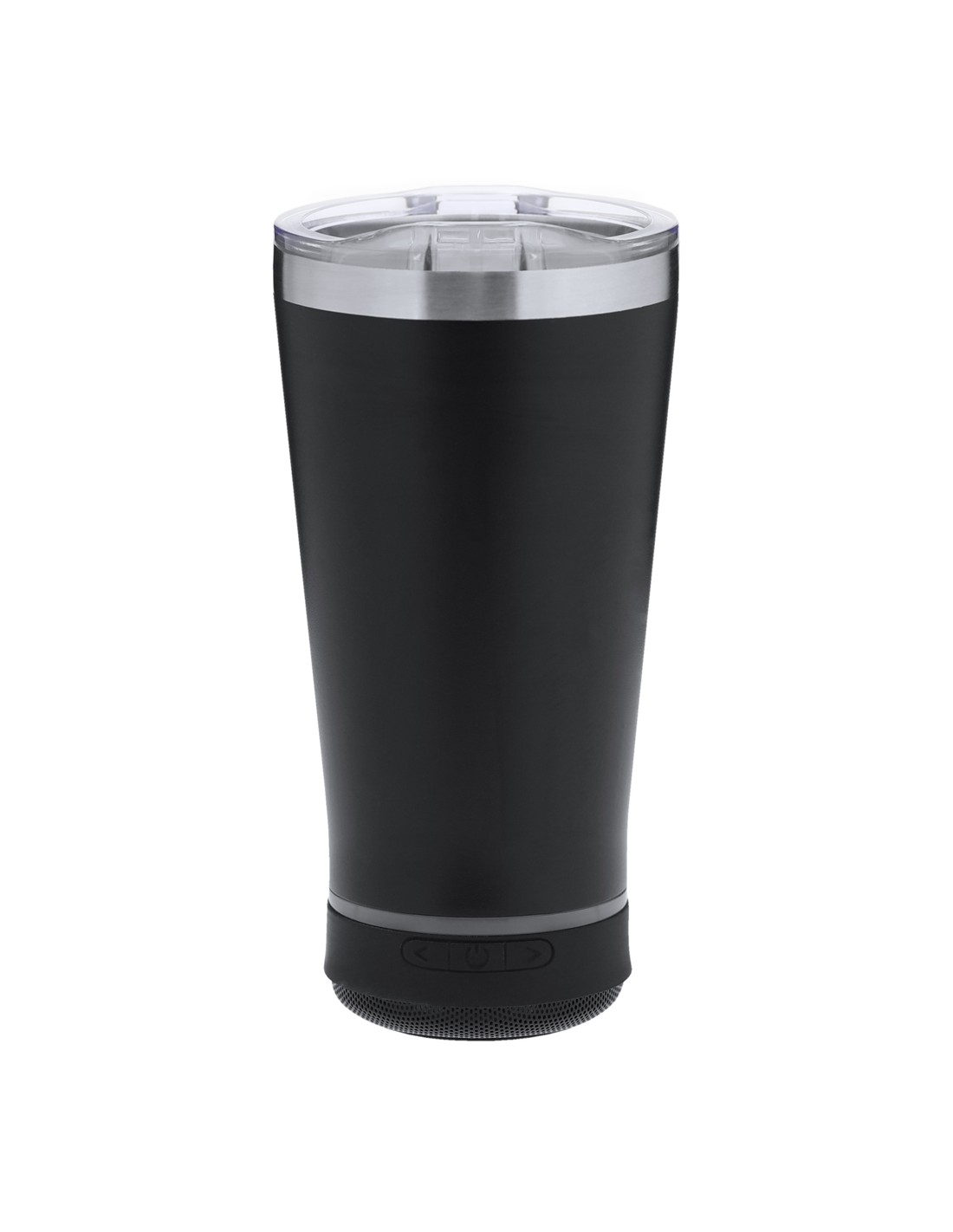 Vaso Térmico con Altavoz Bluetooth® 5.3 de 3W integrado. Con 440 ml de capacidad y fabricado en acero inoxidable de doble pared, asegurando una durabilidad máxima y un excelente mantenimiento de la temperatura de las bebidas, ya sean frías o calientes. Es ideal para tener en tu escritorio, mesa o en cualquier superficie donde disfrutar tranquilamente de tu bebida favorita. Con dosificador en tapadera y abre fácil, libre de BPA. Cuenta con base antideslizante a juego, que proporciona una mayor estabilidad.