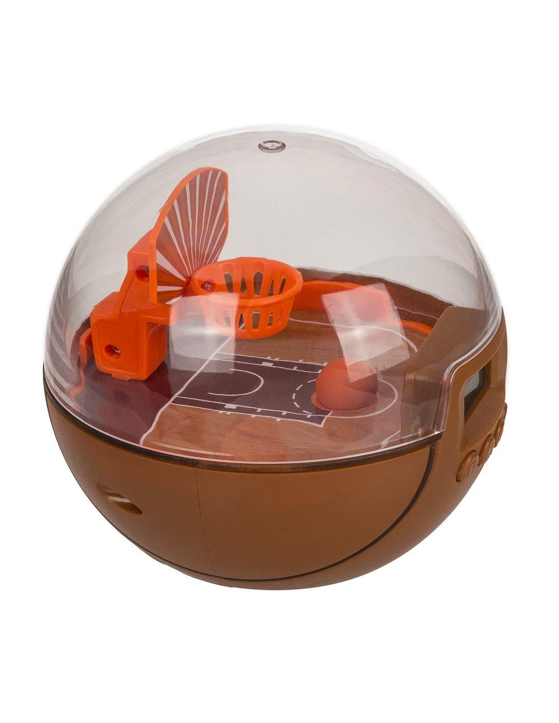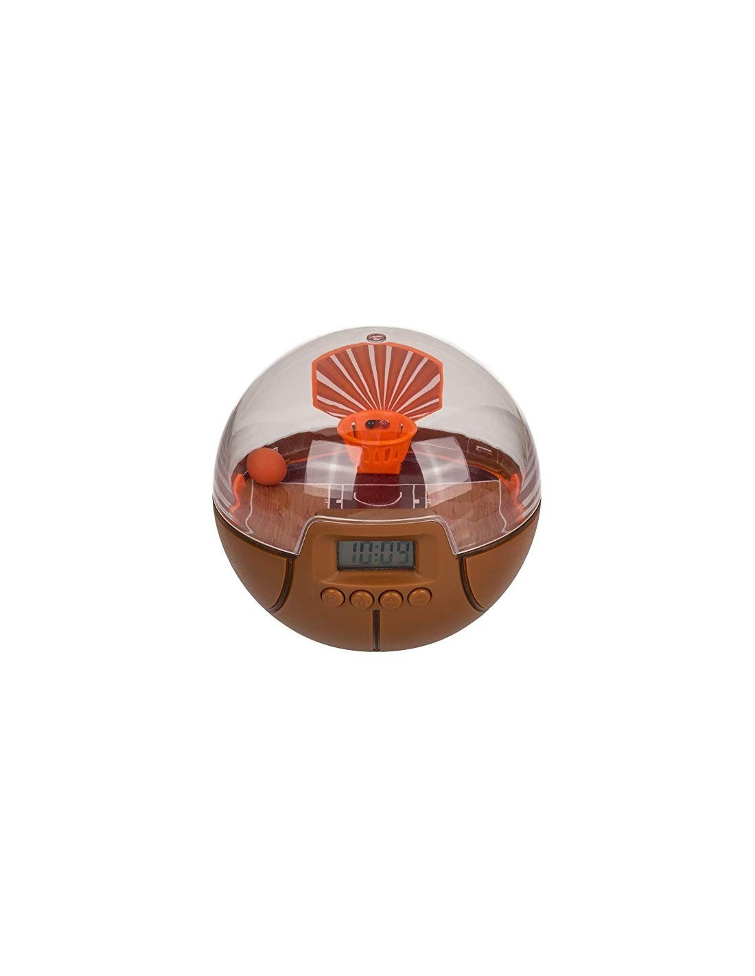 Original reloj despertador en forma de balón de baloncesto con cancha en su interior.
