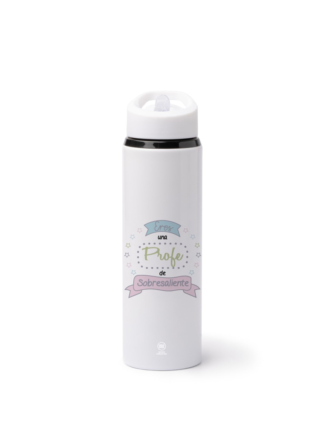 Original botella de acero inoxidable de 700 ml. decorada con el texto "eres una profe de sobresaliente".