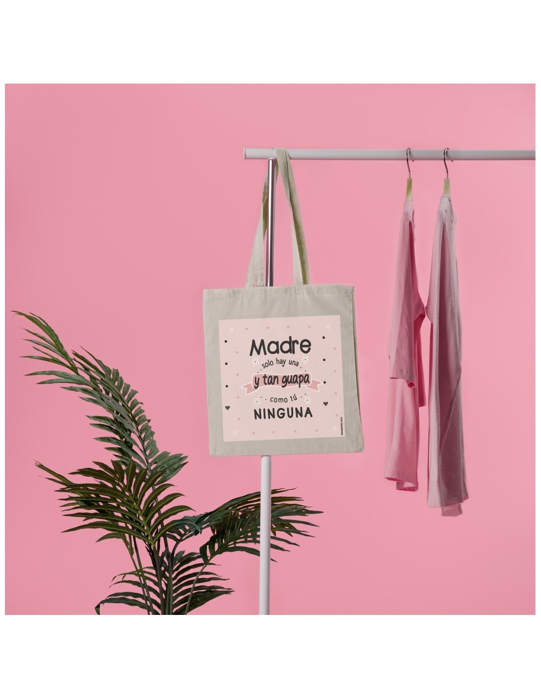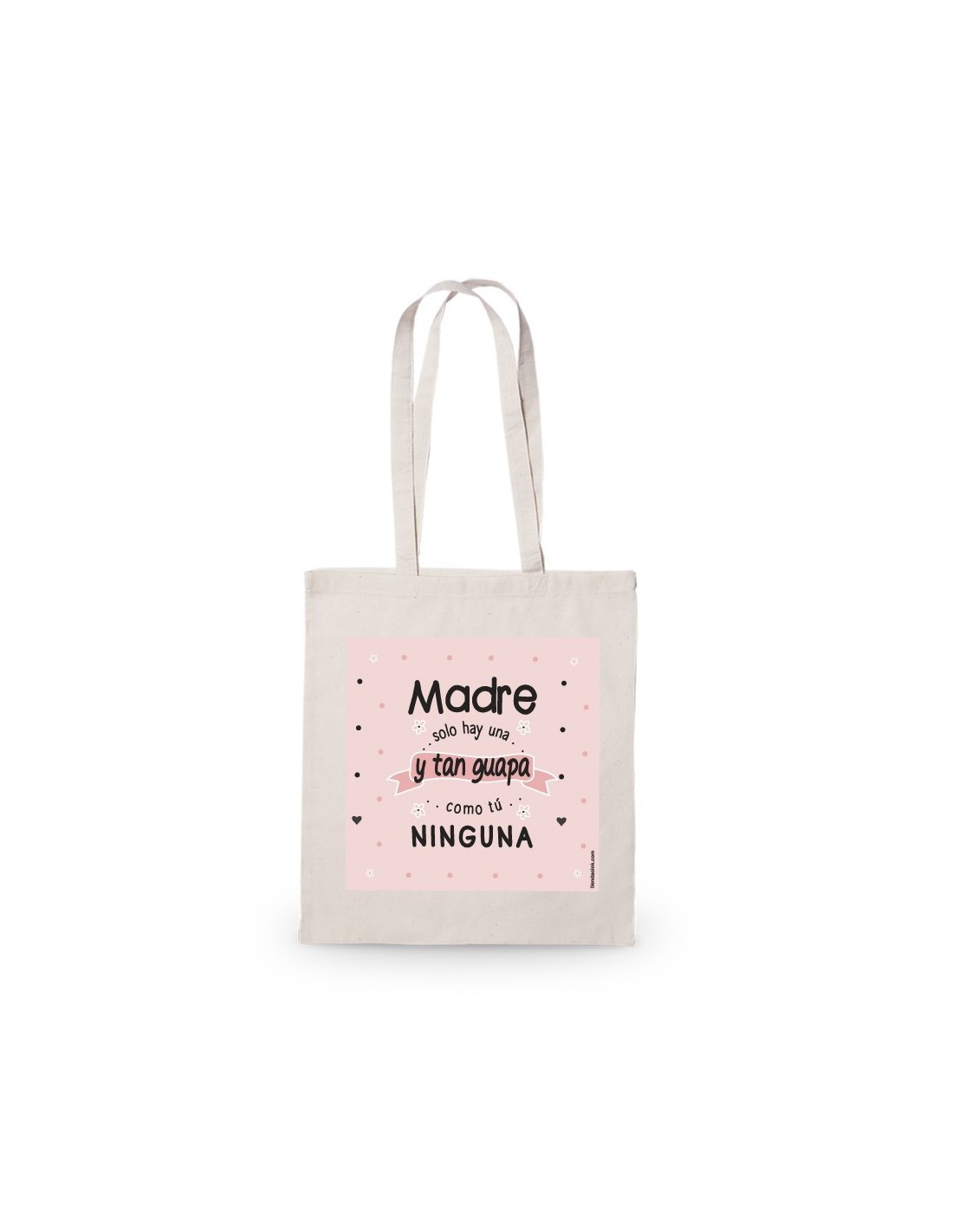 Amplia y ligera bolsa de algodón decorada con el mensaje "madre solo hay una y tan guapa como tú ninguna".