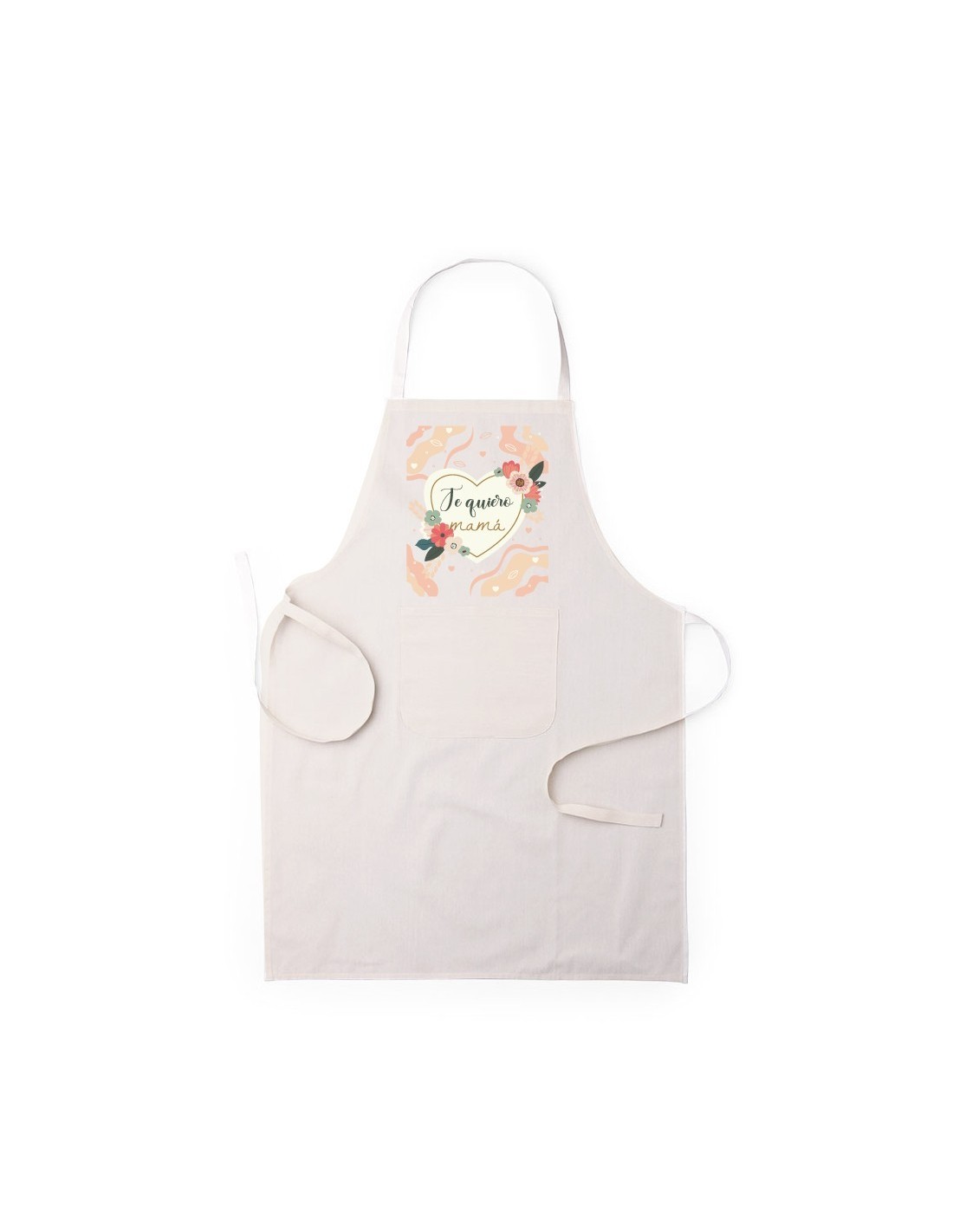 Original y divertido delantal decorado con el mensaje "te quiero mamá".