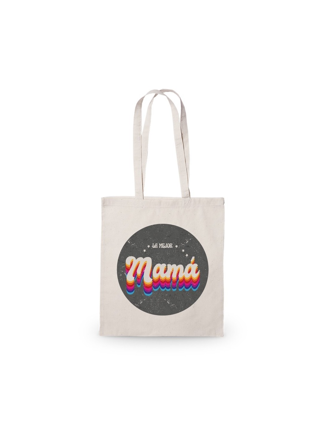 Original taza de porcelana blanca con asa, decorada con estilo retro, simulando un restaurante llamado "mamá".
