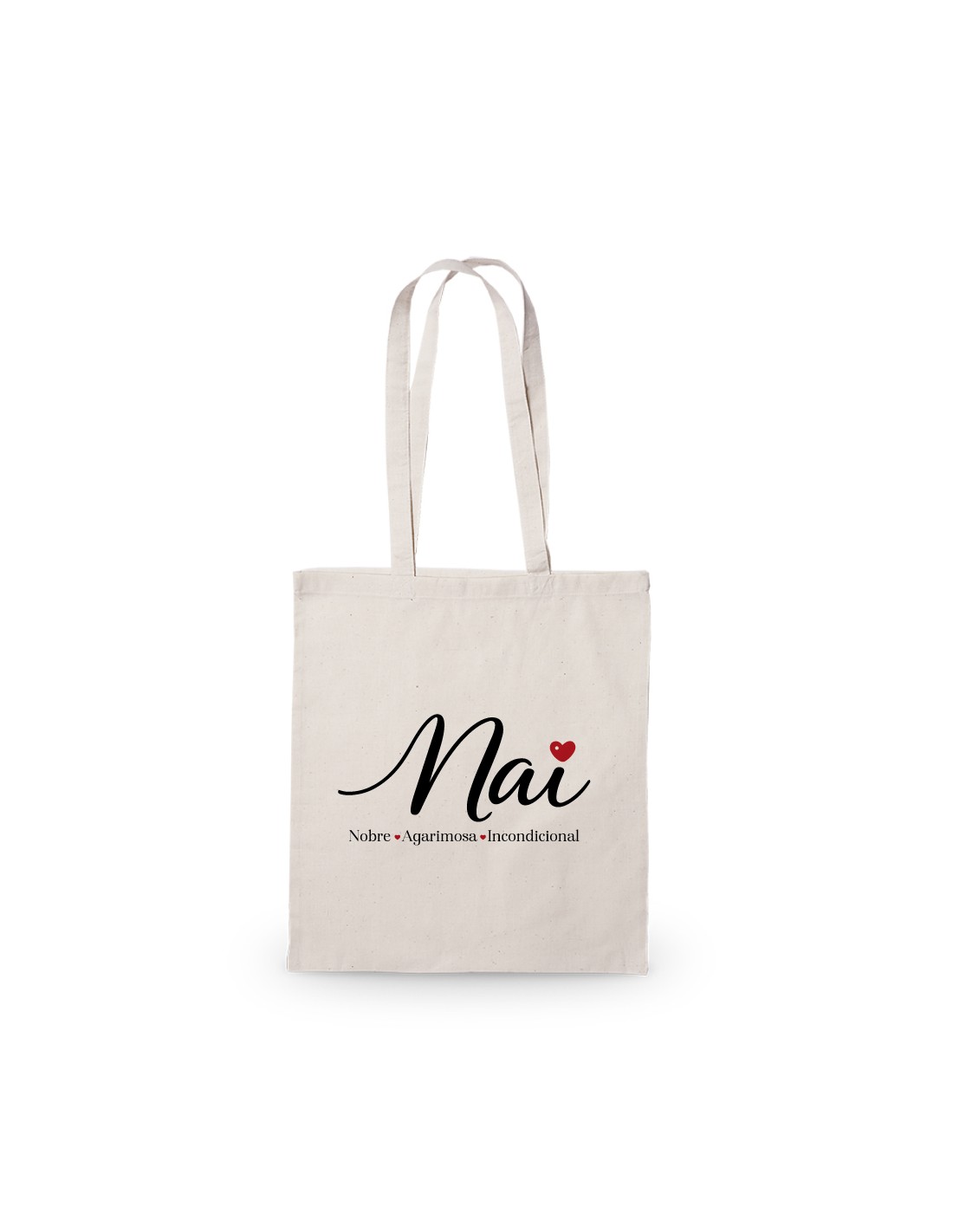 Amplia y ligera bolsa de algodón decorada con mensaje en gallego "Nai: Nobre, agarimosa, incondicional".