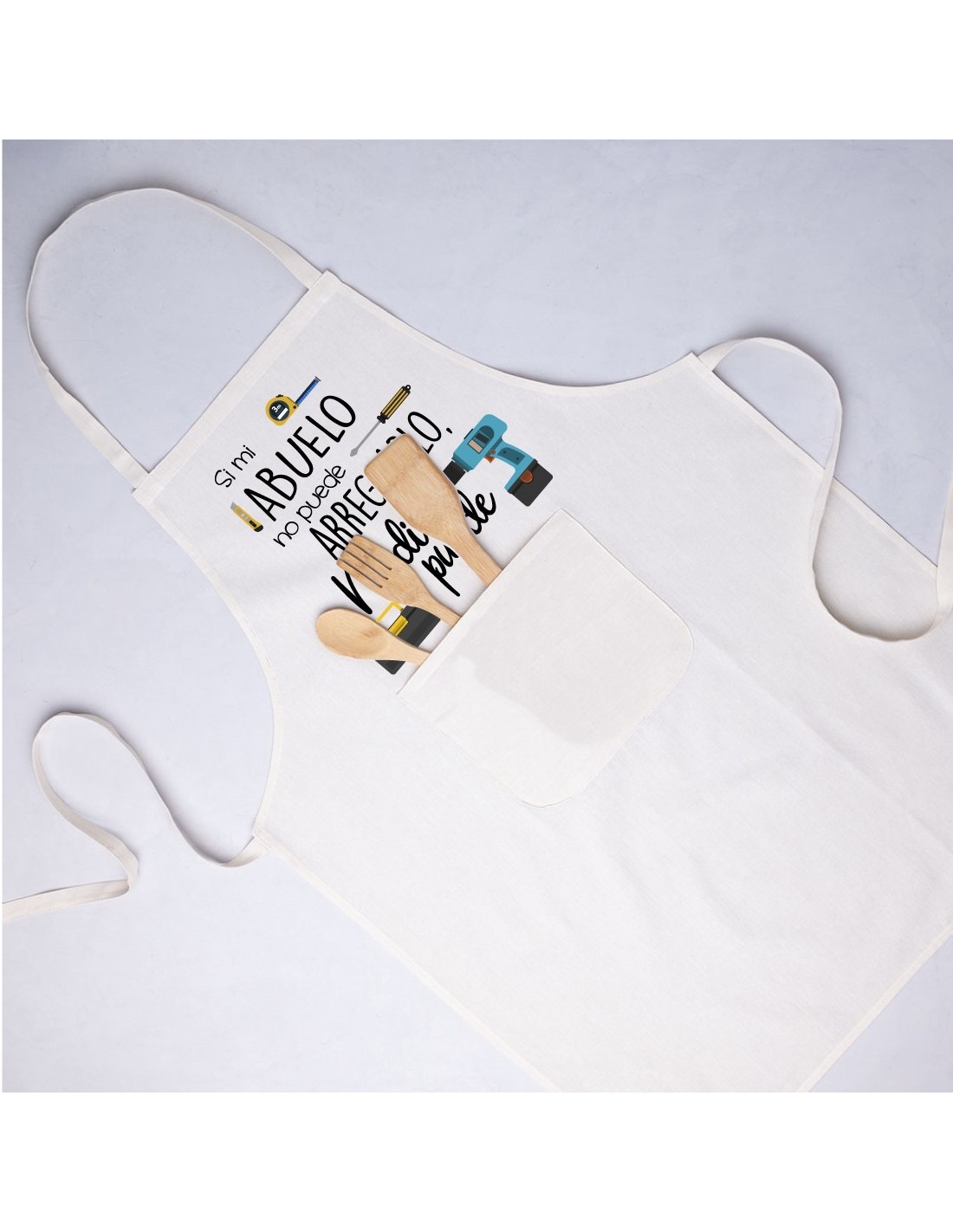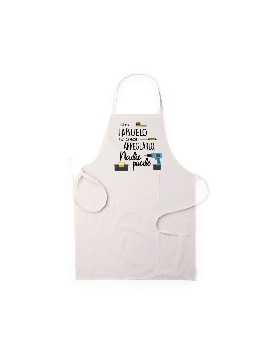Original y divertido delantal decorado con el mensaje "si mi abuelo no puede arreglarlo nadie puede".