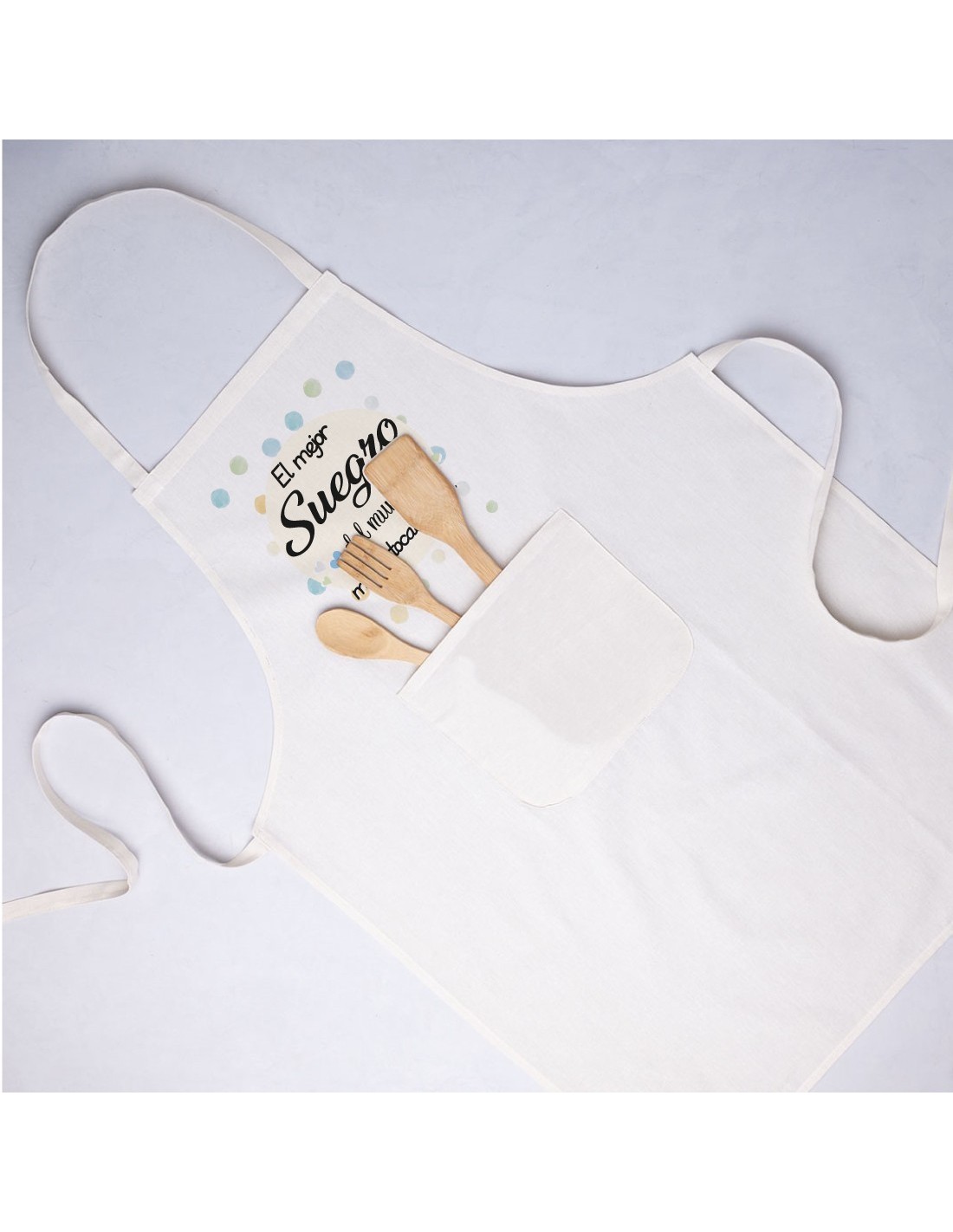 Original y divertido delantal decorado con el mensaje "el mejor suegro del mundo me ha tocado a mi".
