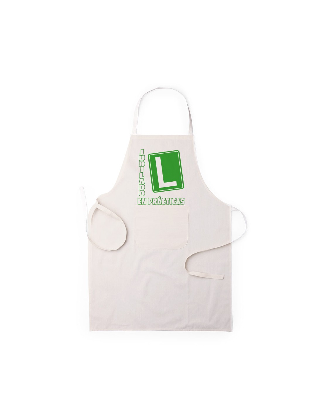 Original y divertido delantal decorado con el mensaje "Jubilado en prácticas".