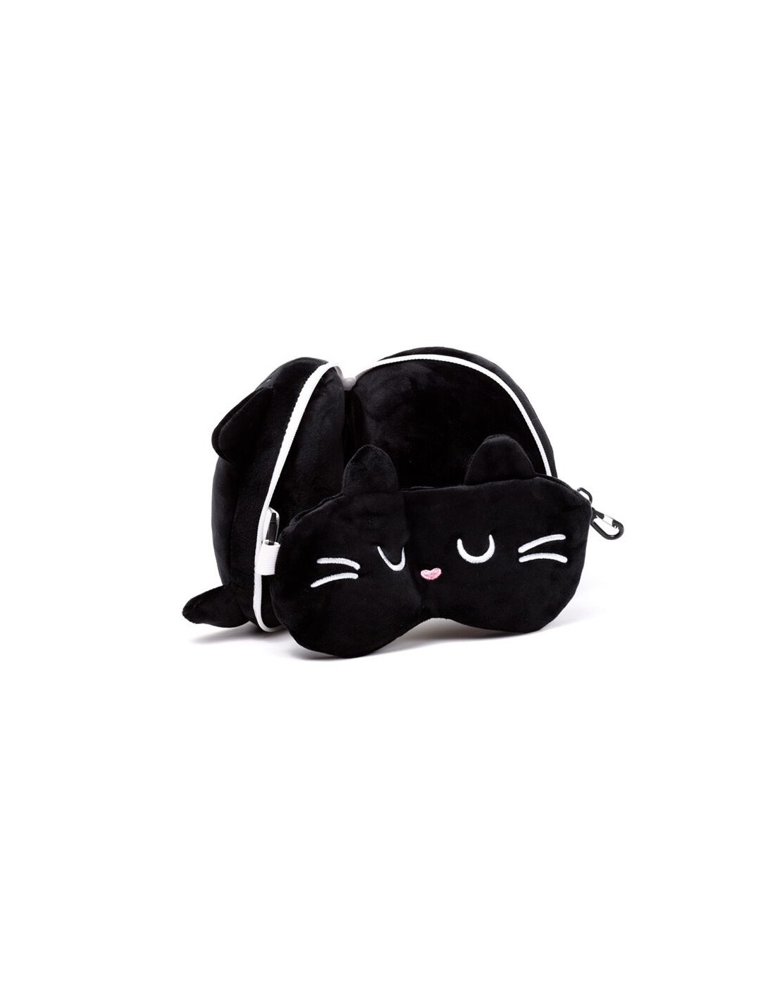 Original almohada de viaje en forma de gato negro con antifaz incluído.