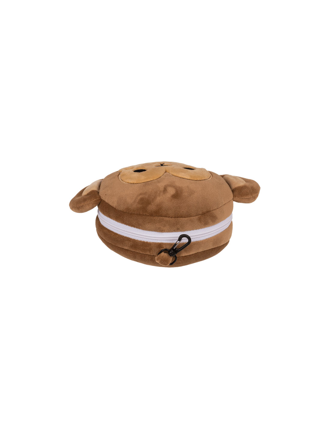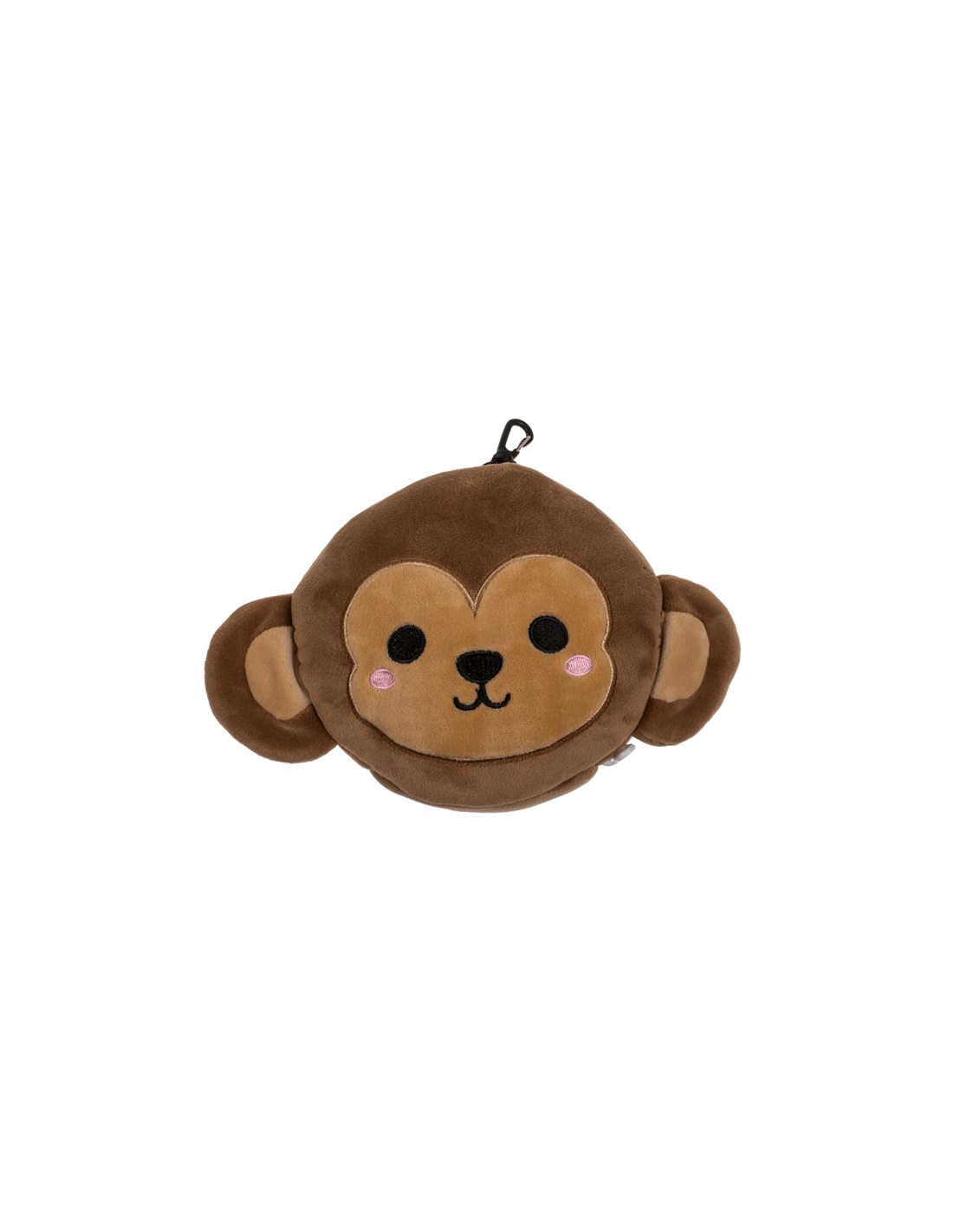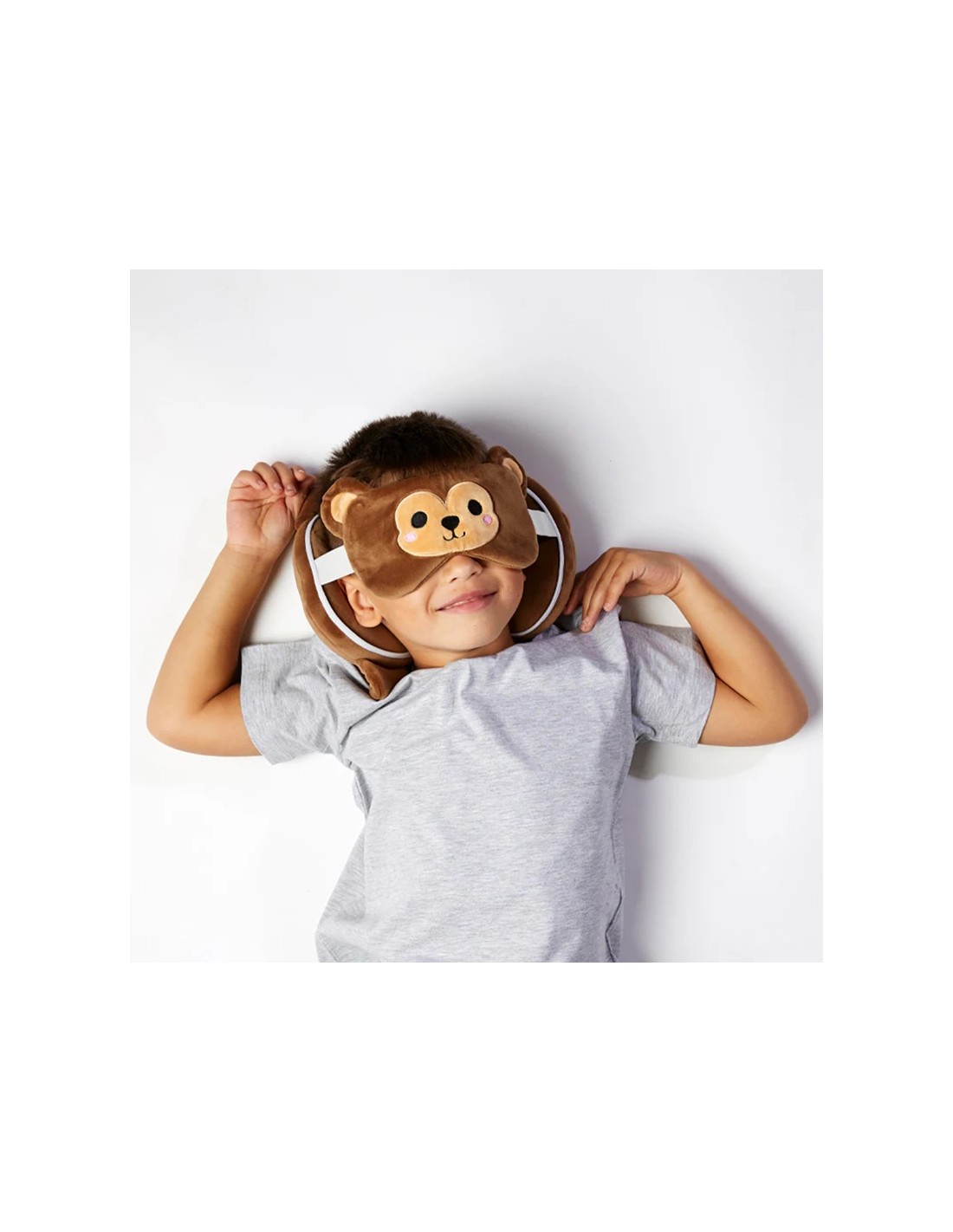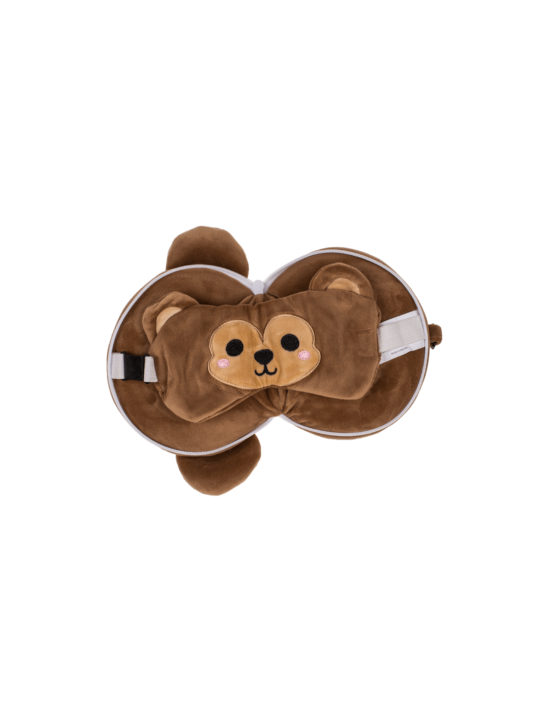 Original almohada de viaje en forma de mono con antifaz incluído.