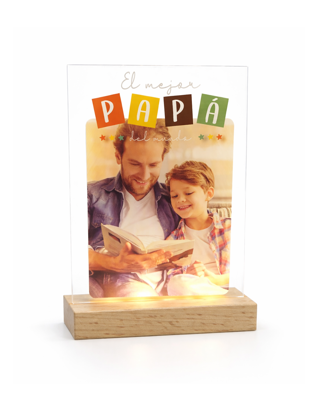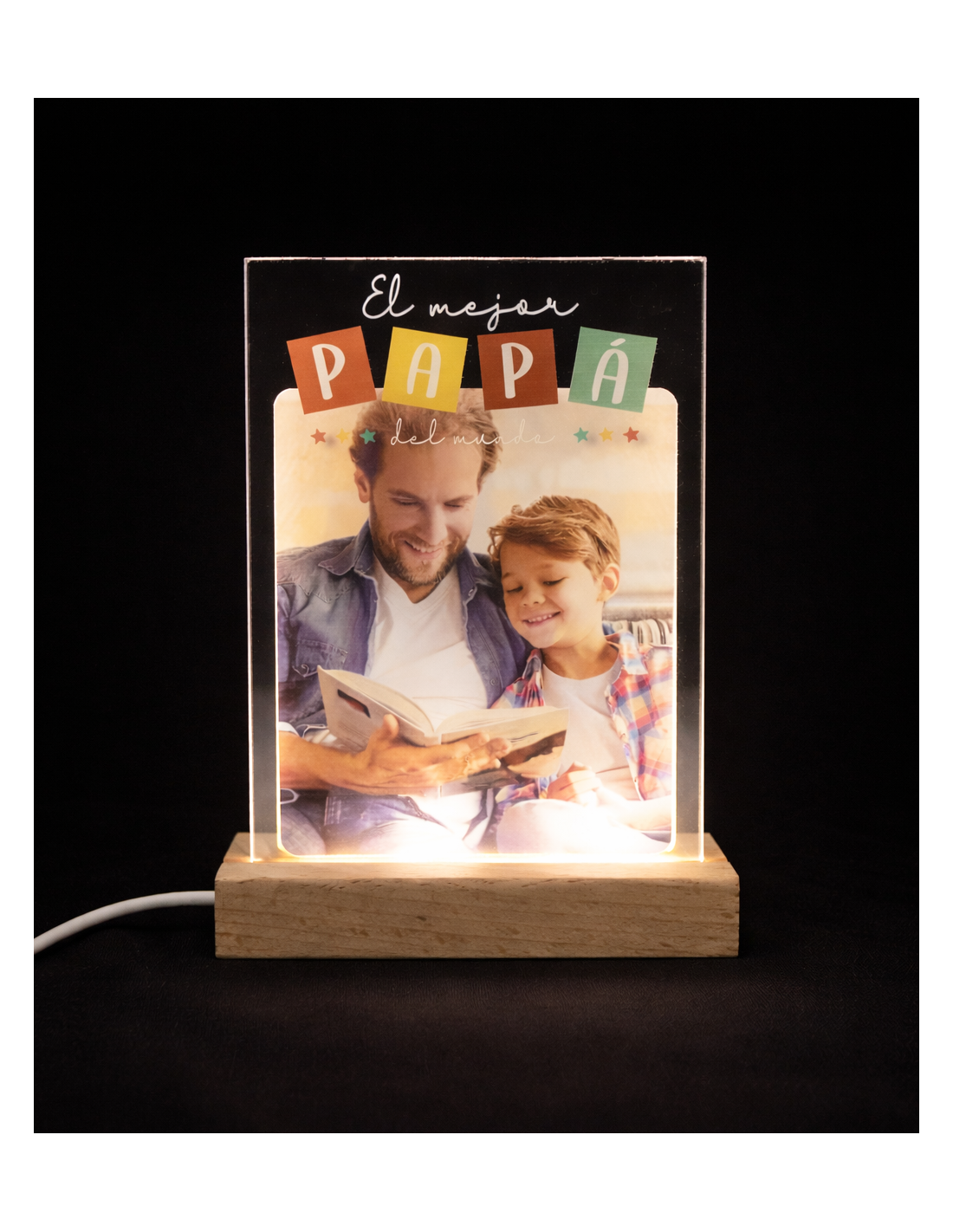 METACRILATO EL MEJOR PAPÁ DEL MUNDO PERSONALIZADO CON LUZ Y SOPORTE