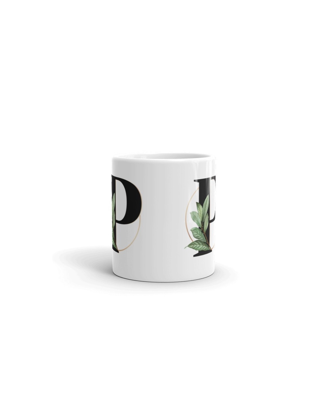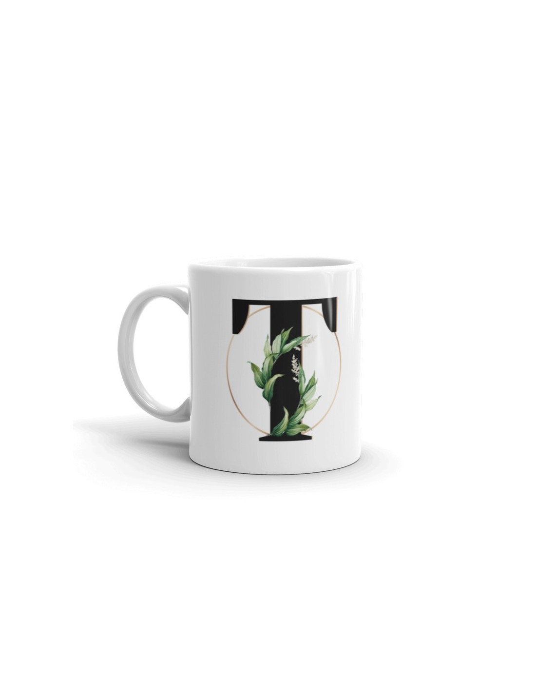 Original taza personalizada con la inicial que tú elijas decorada con motivos botánicos. Un regalo personalizado con el que acertarás seguro.
