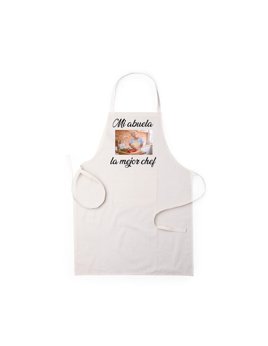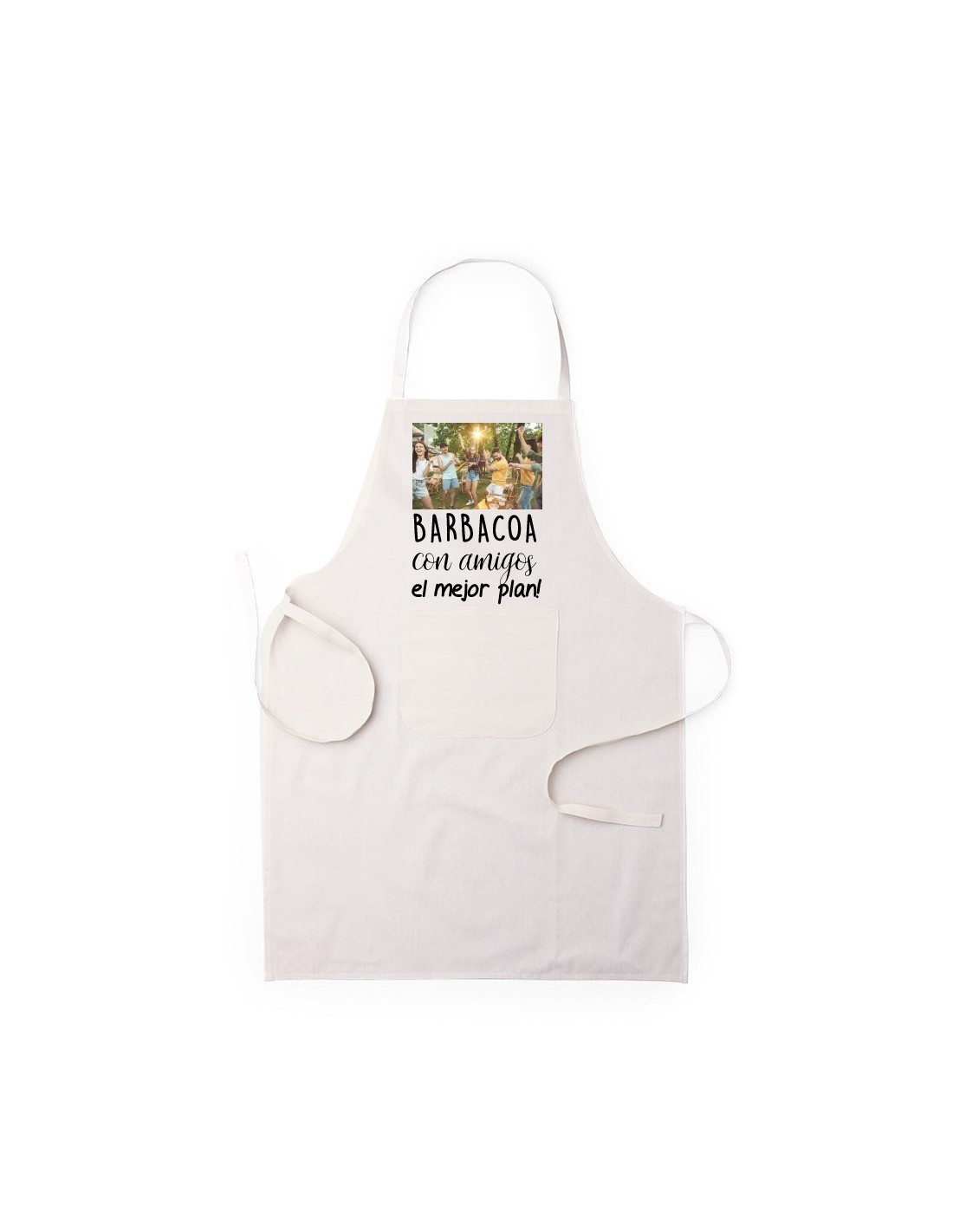 Personaliza un delantal de algodón con la foto o el texto que tú elijas.