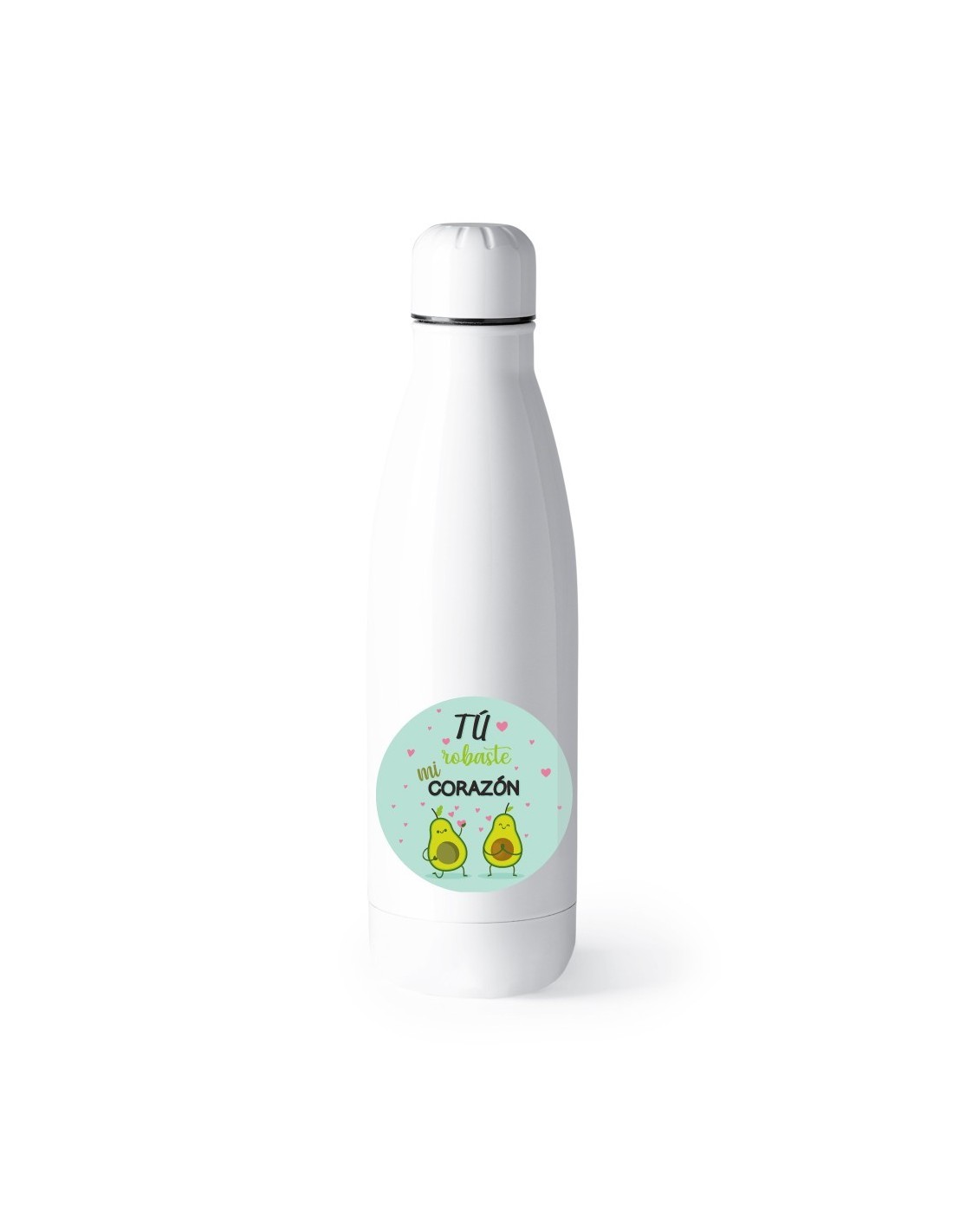 Romántico y práctico bidón termo con doble pared decorado con el mensaje "Tú robaste mi corazón".