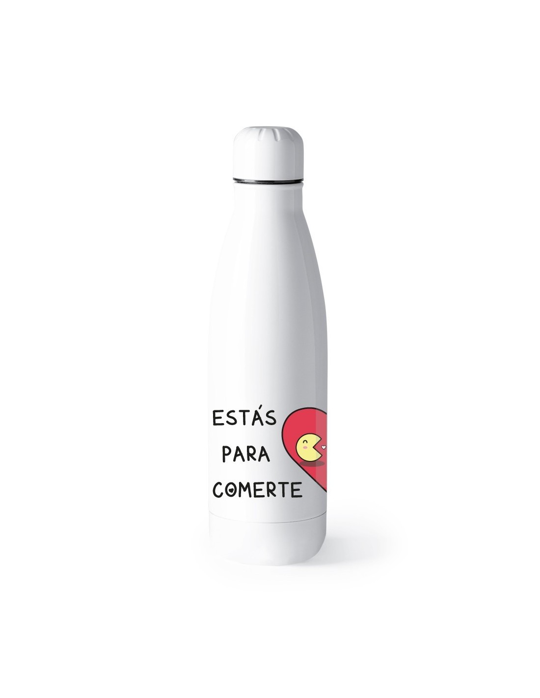 Original y práctico bidón termo con doble pared decorado con el mensaje "Estás para comerte".