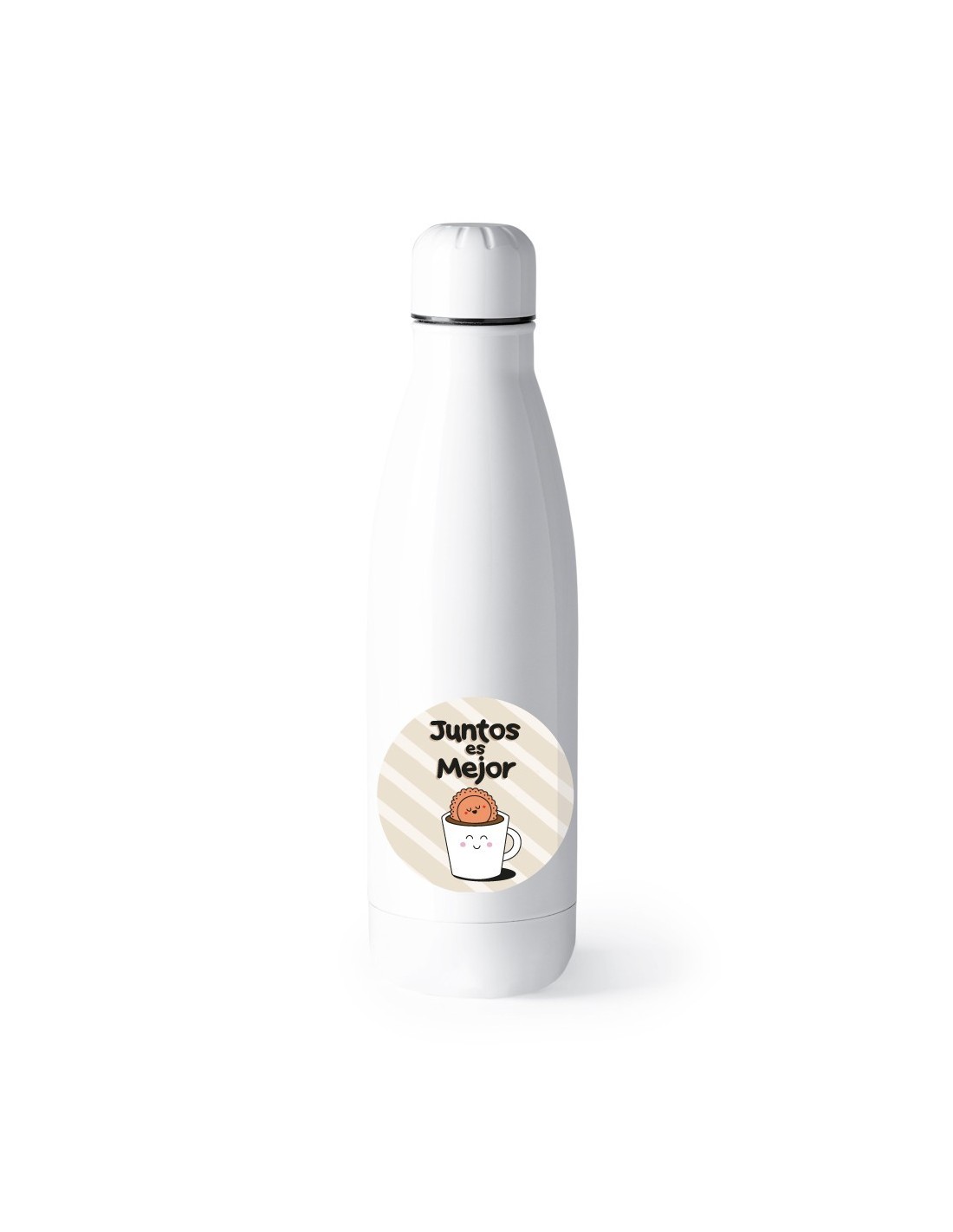 Original y práctico bidón termo con doble pared decorado con el mensaje "Juntos es mejor".