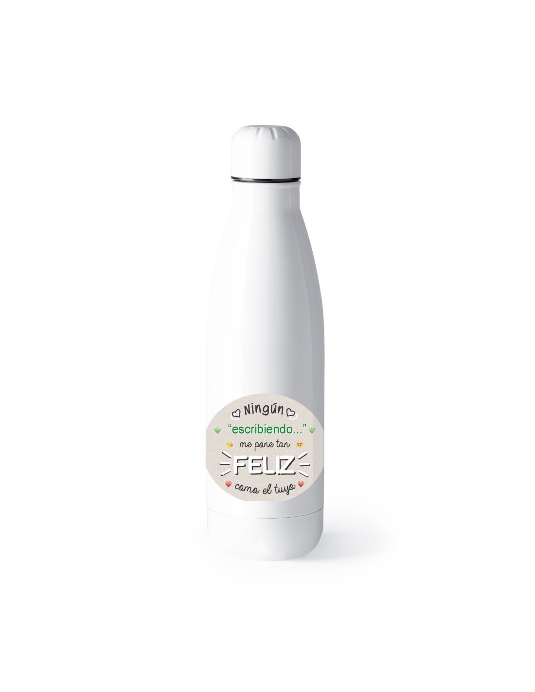 Original y práctico bidón termo con doble pared decorado con el mensaje "Ningún escribiendo me pone tan feliz como el tuyo".