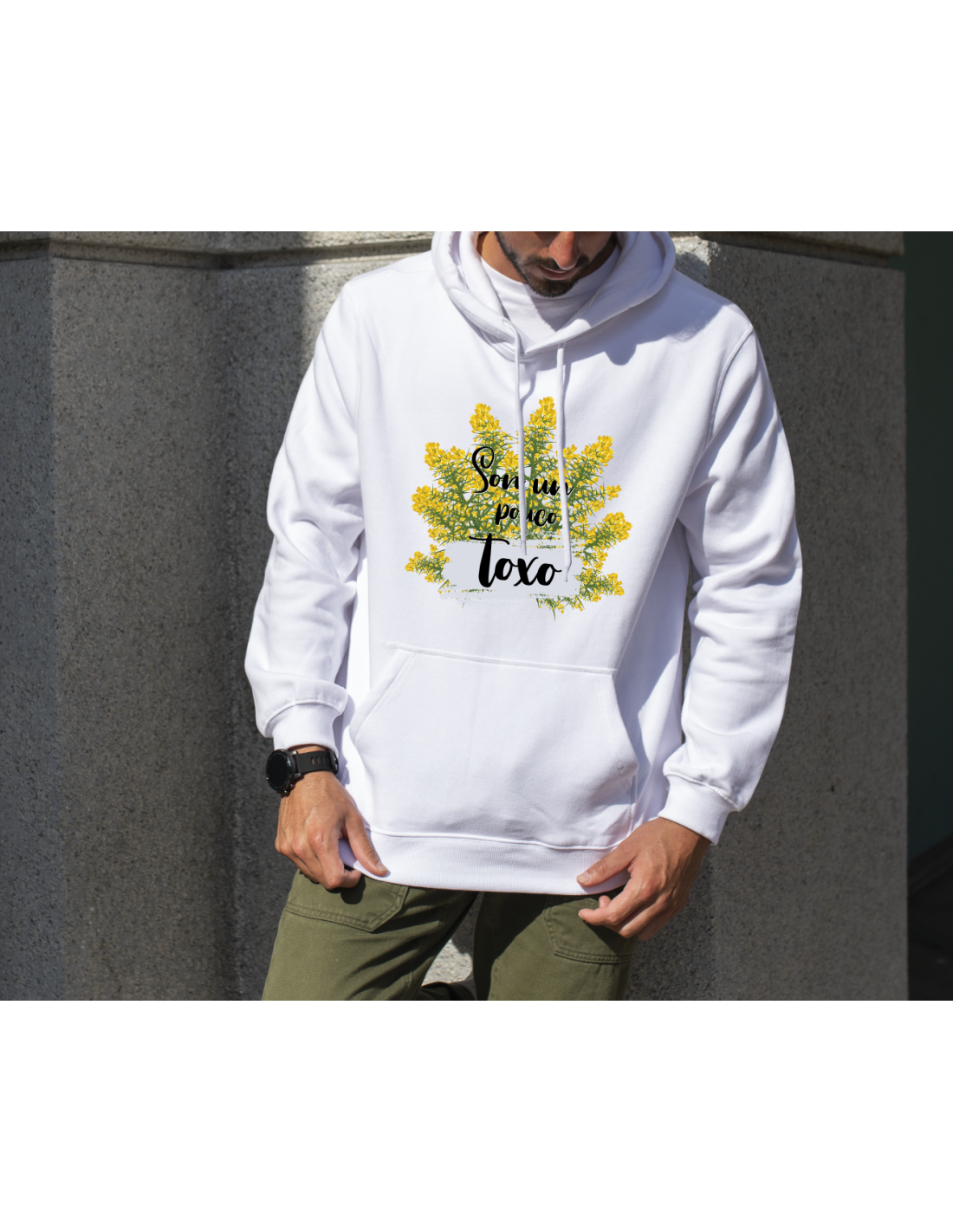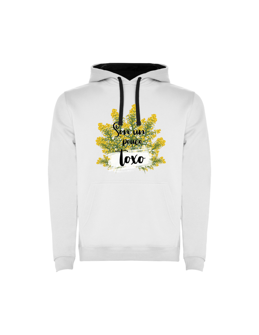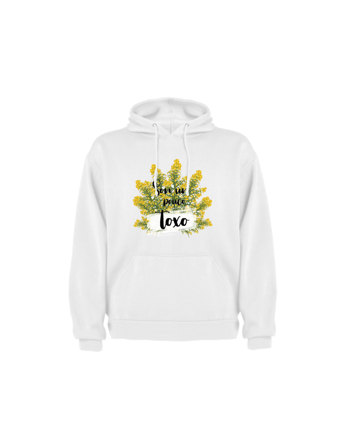 Original sudadera blanca decorada con el mensaje "Son un pouco toxo".