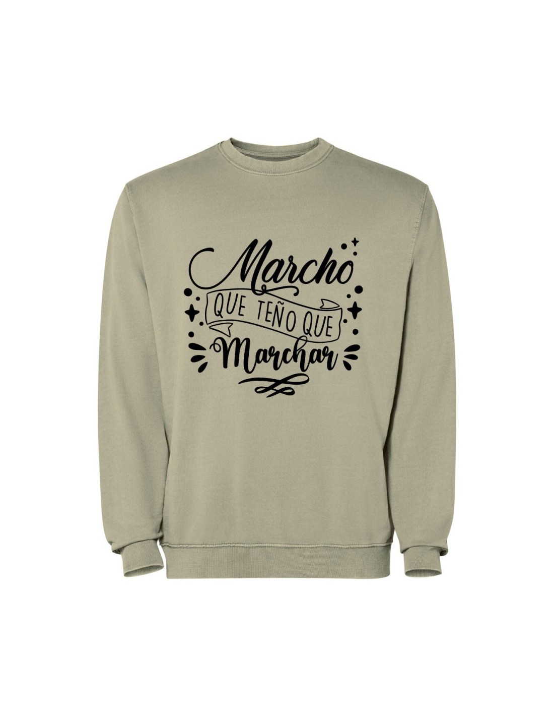 Original sudadera verde kaki decorada con el mensaje "marcho que teño que marchar.