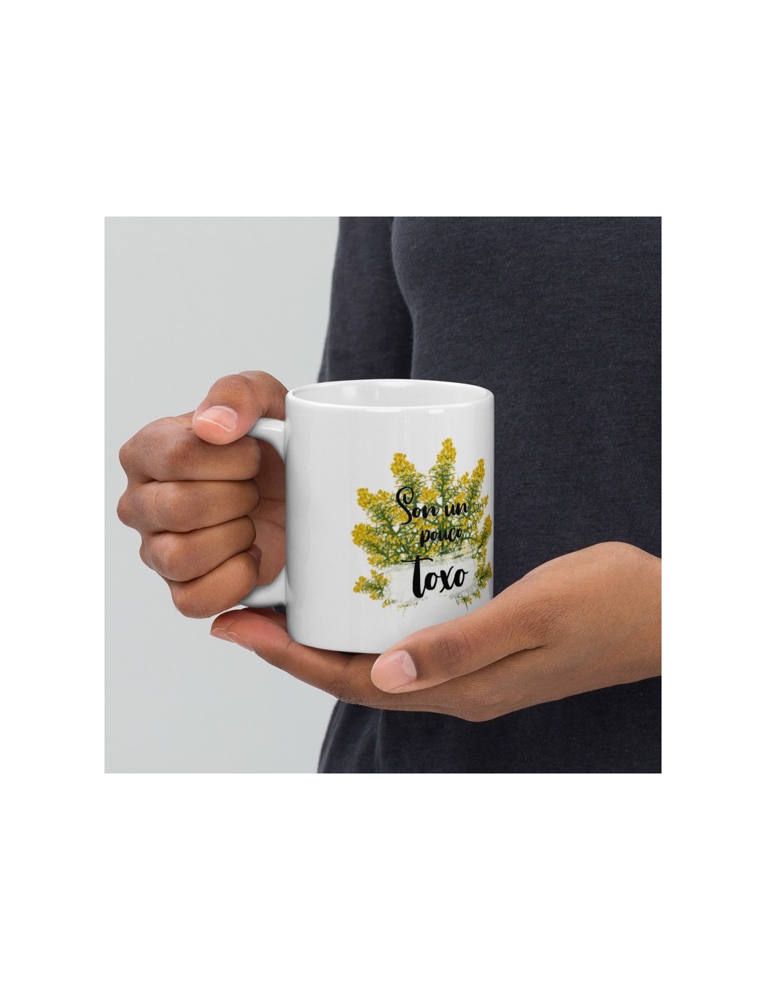 Original taza de porcelana decorada con el mensaje "Papá eres la caña", simulando una etiqueta de cerveza.