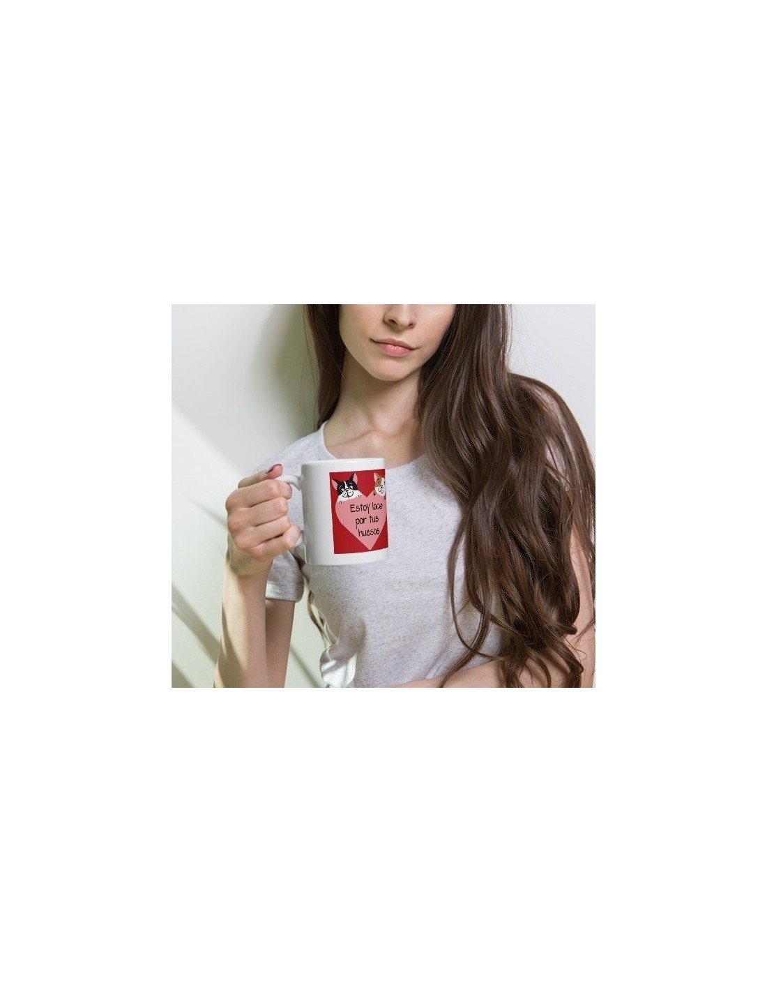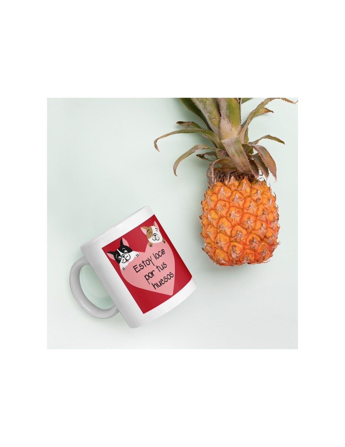 Original taza de porcelana decorada con el mensaje "Papá eres la caña", simulando una etiqueta de cerveza.