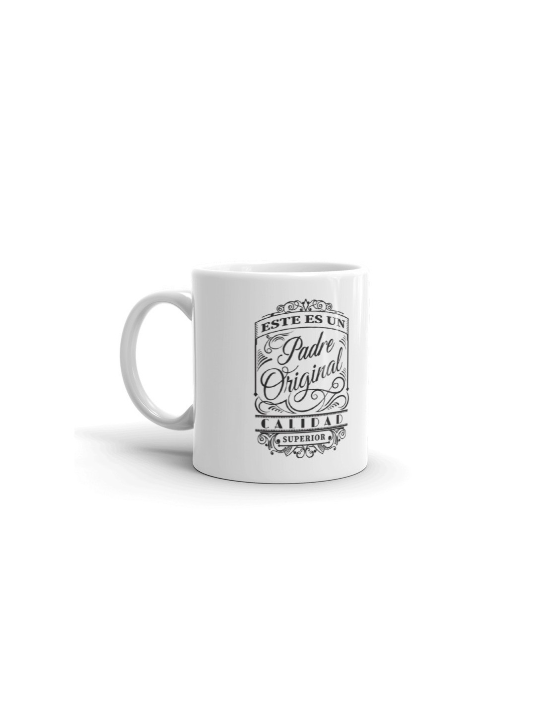 Original taza de porcelana decorada con el mensaje "Este es un padre original, calidad superior". Un regalo ideal para los padres mas molones.