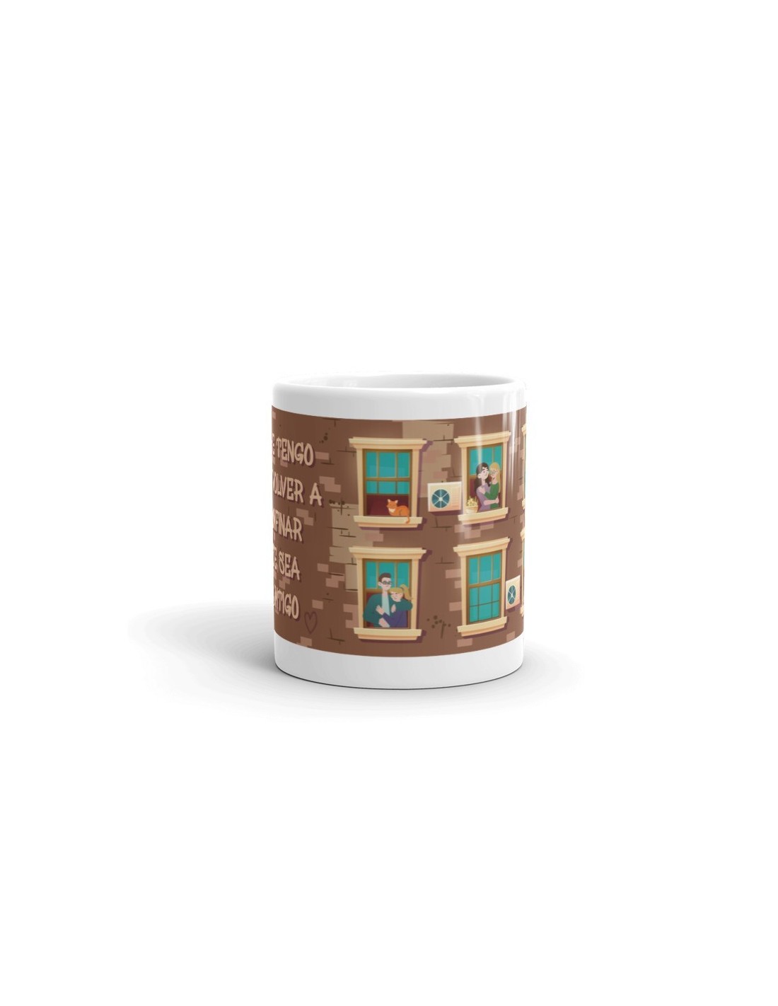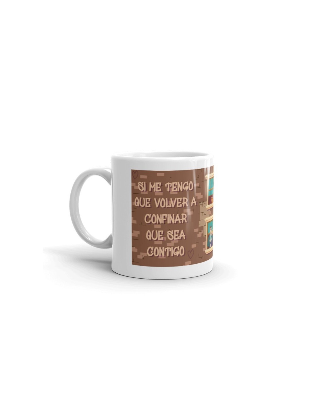 Original taza de porcelana blanca con asa decorada con la tabla periódica de los elementos.