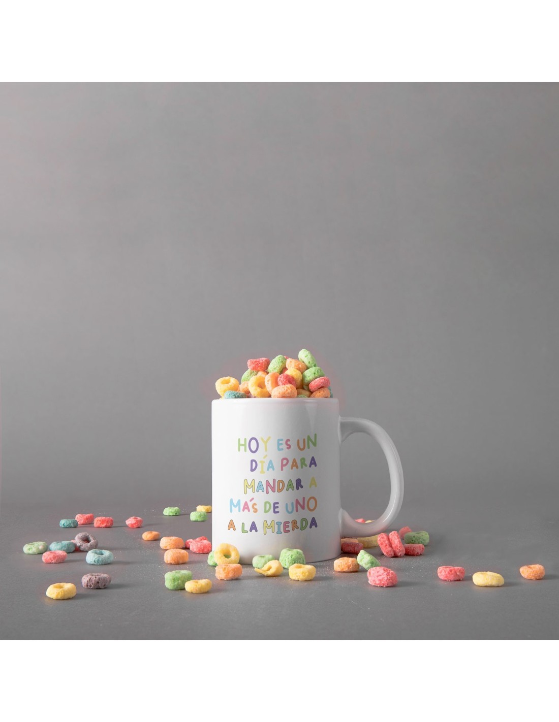 Original taza de porcelana blanca con asa decorada con la tabla periódica de los elementos.