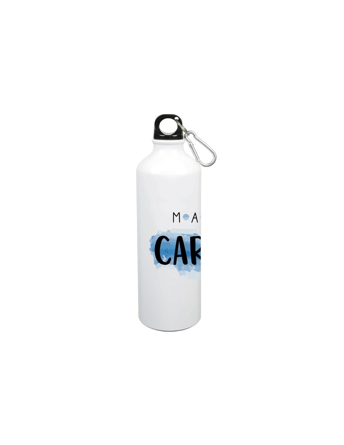 Original botella de aluminio de 800 ml. decorada con el texto "manda carallo".