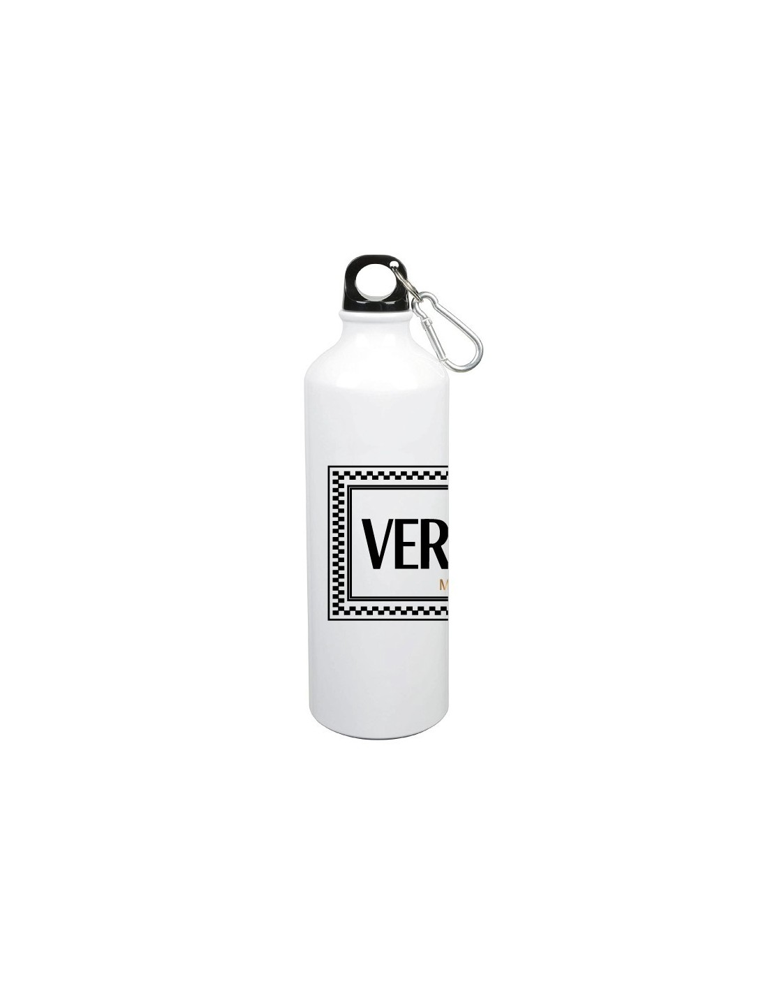 Original botella de aluminio de 800 ml. decorada con el texto "versacho, moda rural".
