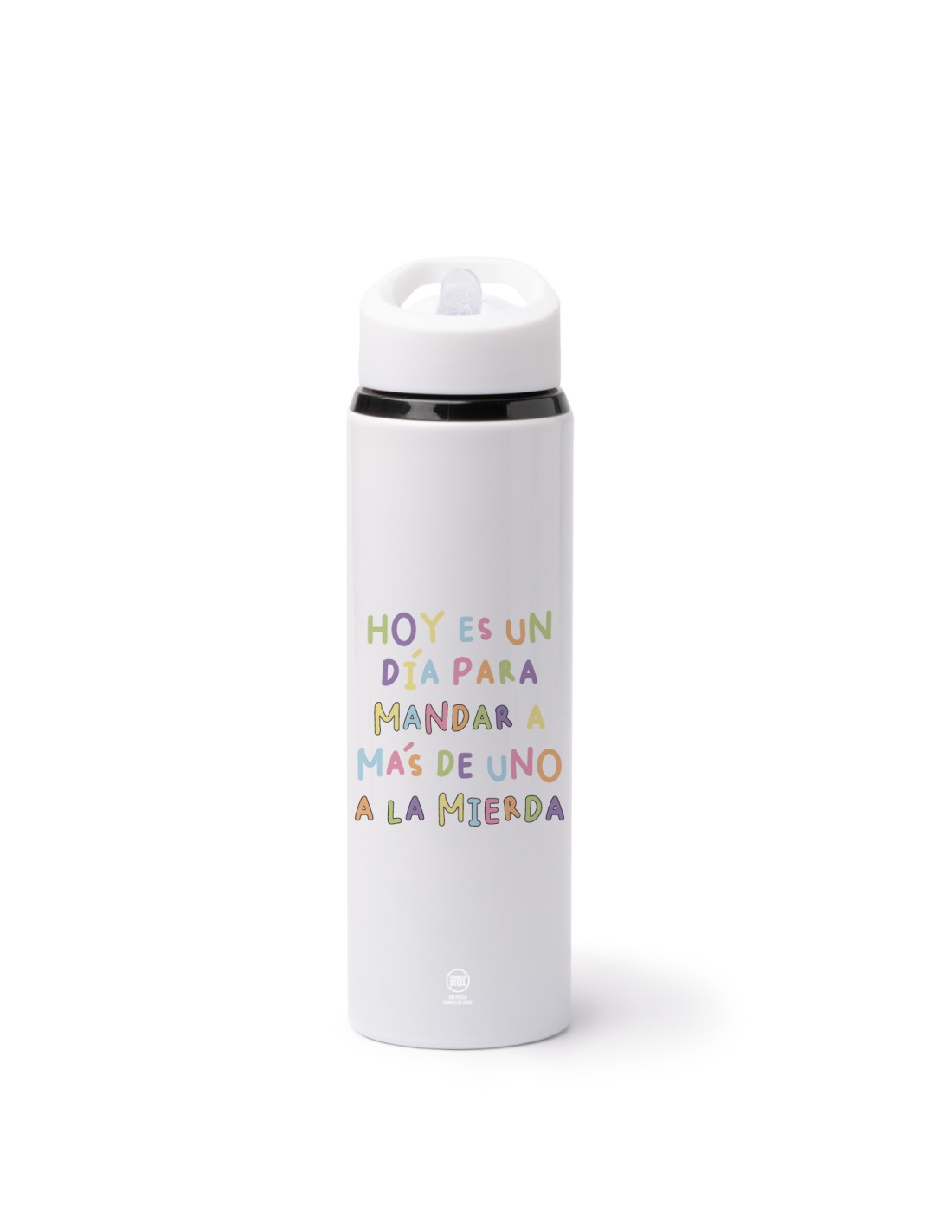 Original botella de acero inoxidable de 700 ml. decorada con el mensaje "hoy es un gran día para mandar a la mierda a más de uno".