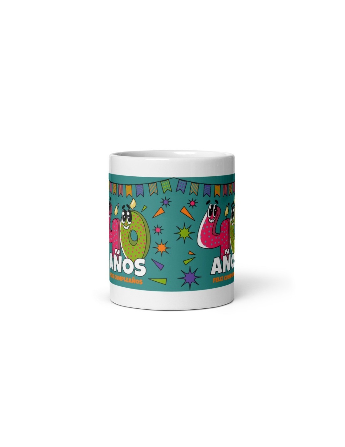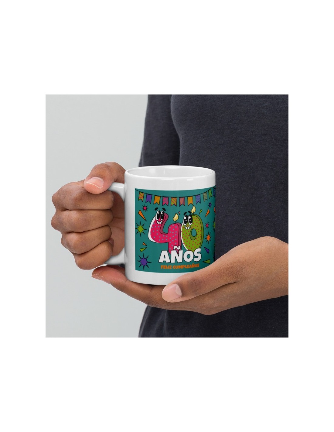 Original taza de porcelana decorada con el mensaje "40 años ¡feliz cumpleaños!".