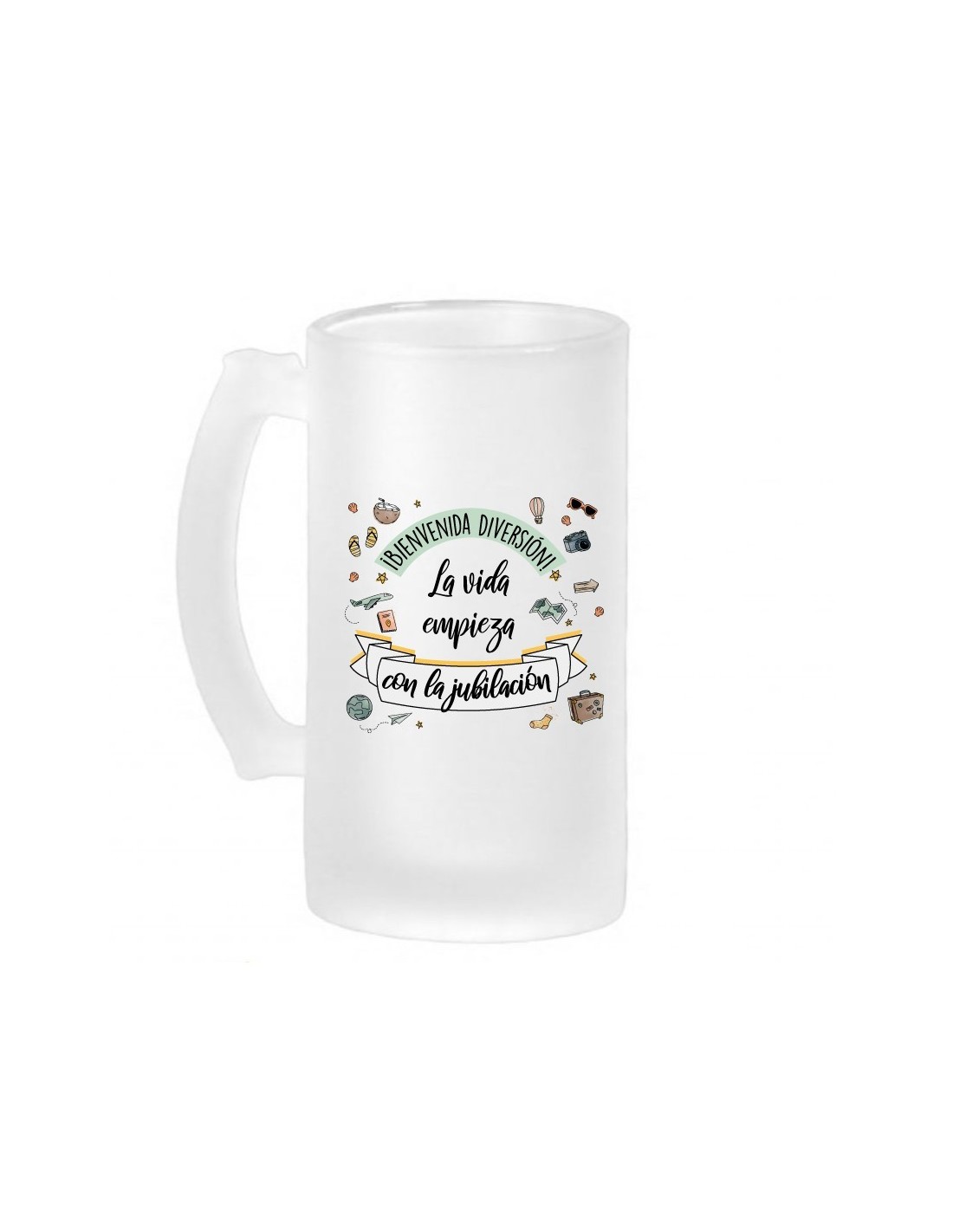 Taza de porcelana blanca con asa decorada con el mensaje "Lo nuestro fue amor a primera risa".